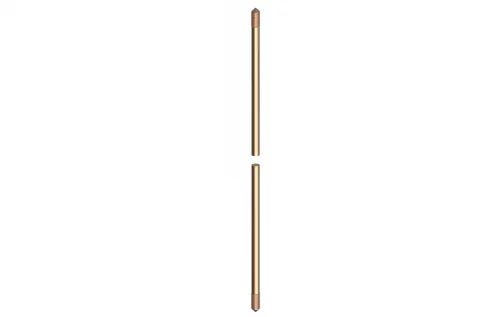 Задача стержневого вертикального заземлителя – организация заземления токоотводов молниезащиты или электрического оборудования. Длина одного стержня – 1500 мм. Стержни соединяются с помощью латунной вкручиваемой муфты NE1306 (разборное соединение). Материал – омедненная сталь. Средняя толщина медного покрытия стержня не менее 250 мкм.