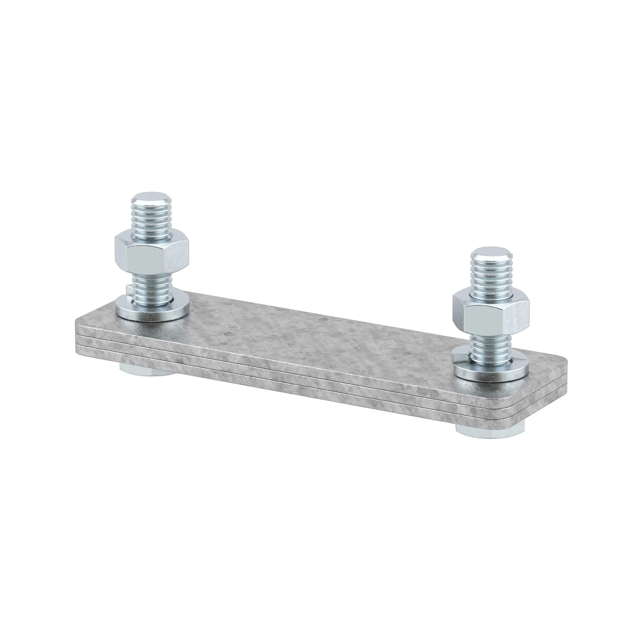 Соединитель «полоса-полоса» применяется для параллельного соединения плоских проводников шириной 25-50 мм. Материал — горячеоцинкованная сталь.