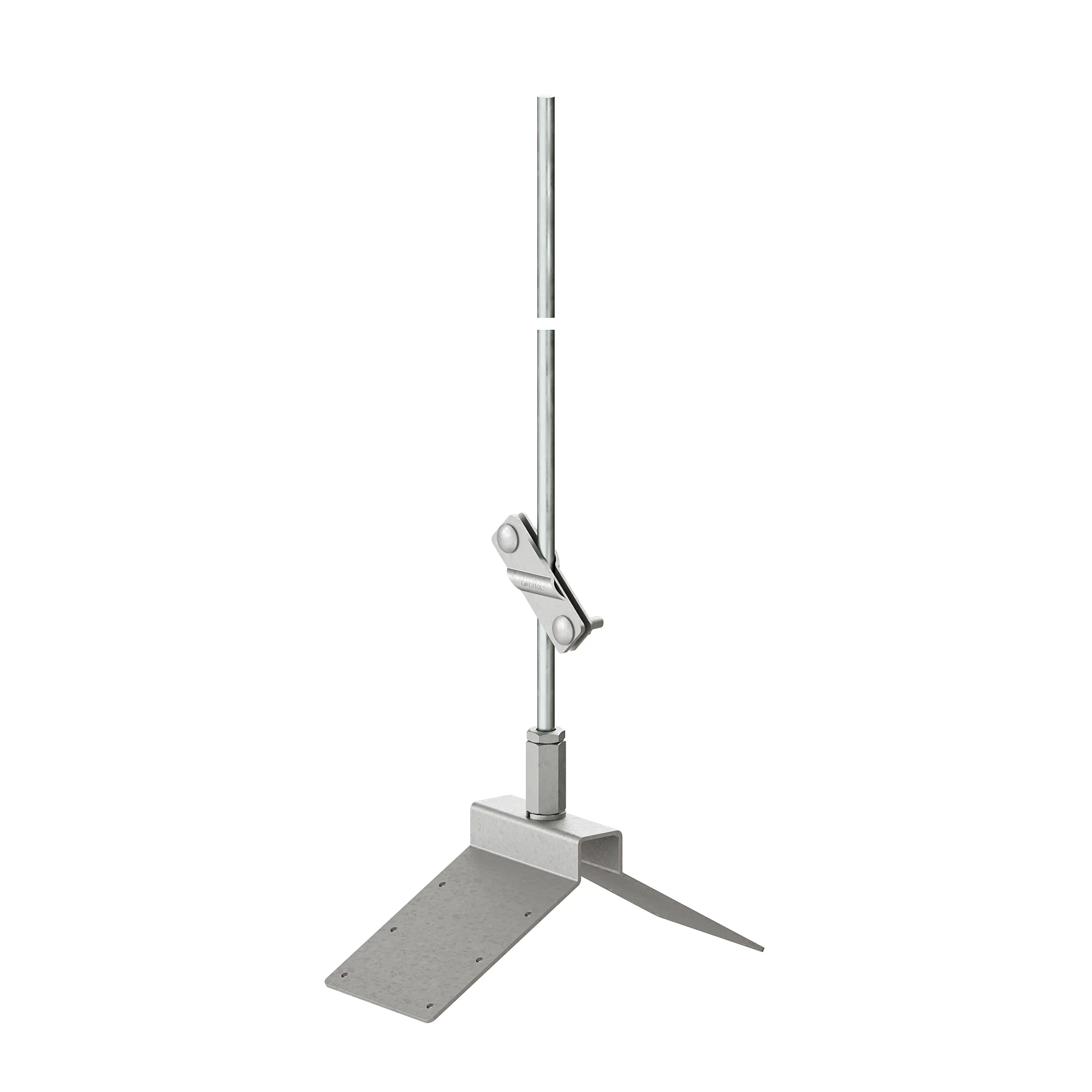 Регулировочный кронштейн для одиночного молниеприемника применяется для выравнивания молниеприемных стержней высотой 1-4 м на бетонных основаниях. Материал — оцинкованная сталь.