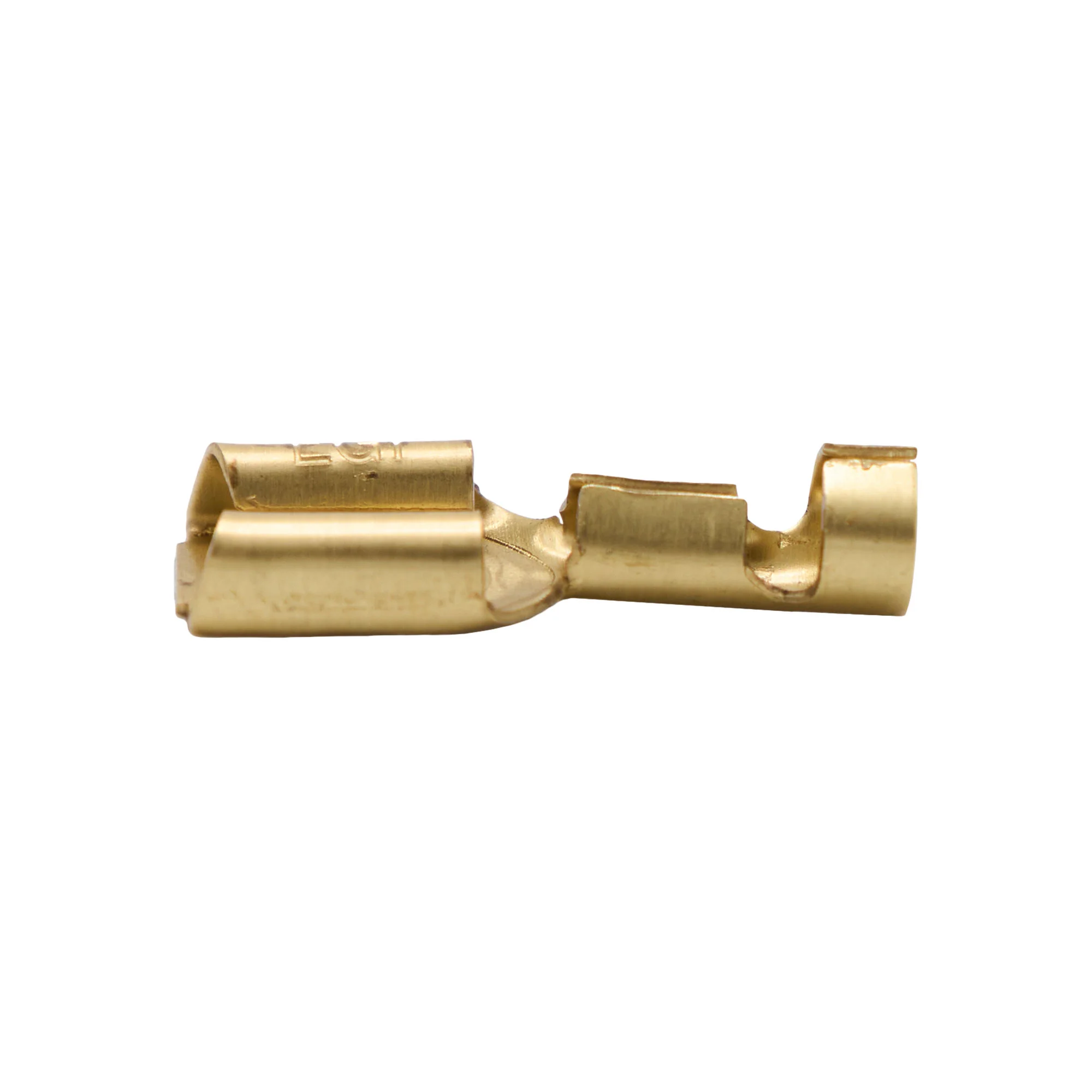 Неизолированный наконечник быстрого соединения (контактный разъем – розетка) предназначен для оконцевания предварительно зачищенных от изоляции медных или алюминиевых проводов и их присоединения к медным клеммам, шинам, зажимам. Материал контактной части – латунь. Сечение провода – 2.5–6 мм².