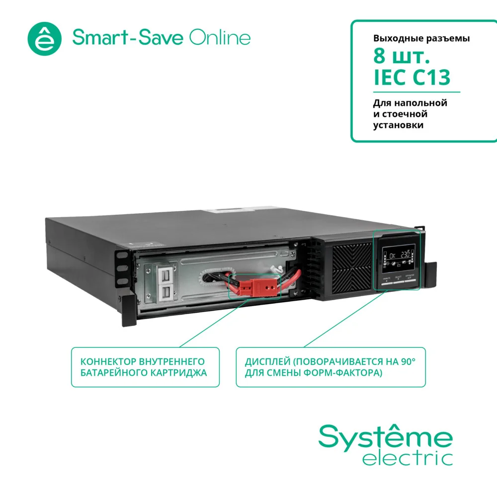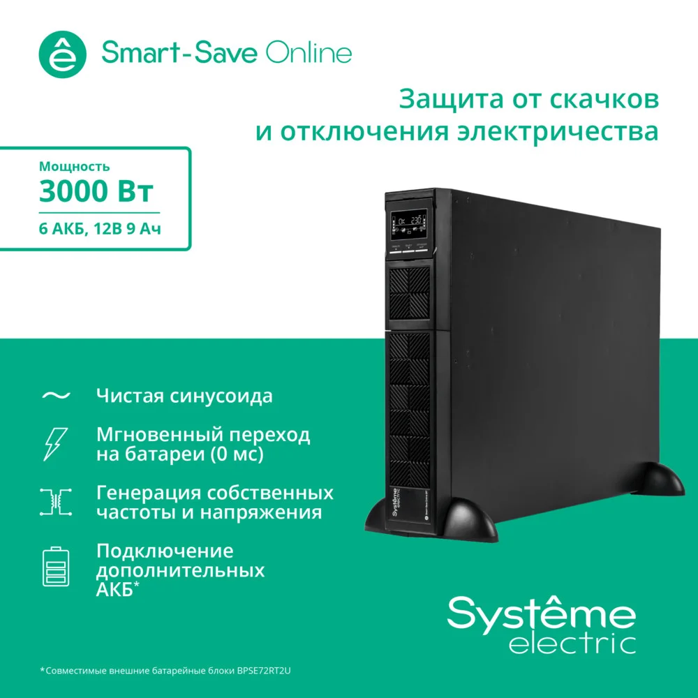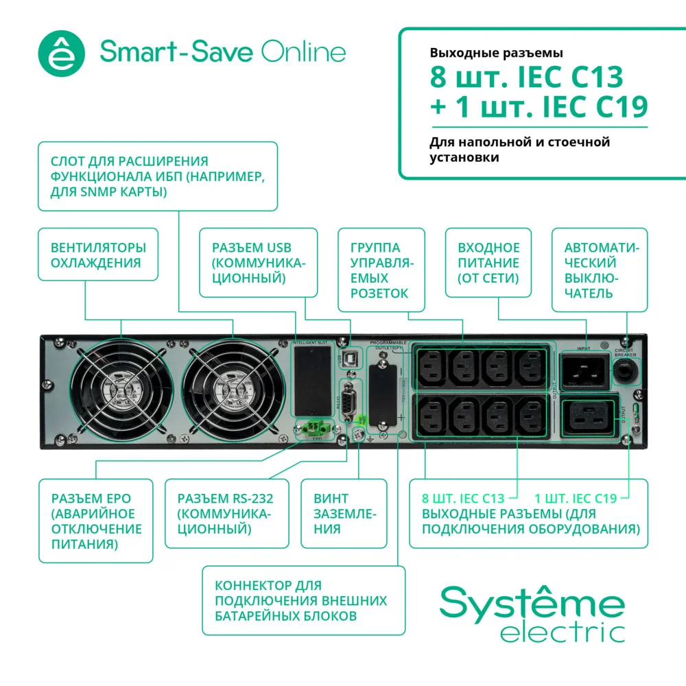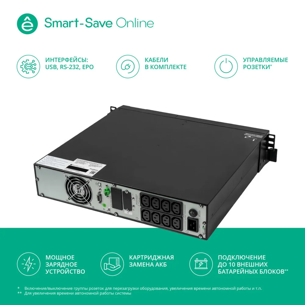 ИБП Smart – Save Online SRVSE3KRTXLI 3кВА/2,7кВт двойного преобразования для защиты чувствительного оборудования в малых и средних предприятиях. Имеет высокий коэффициент мощности PF=0.9. Предназначен для напольной установки или для установки в серверные стойки. Функция USB HID позволяет видеть базовую информацию о заряде ИБП на ПК без установки и/или входа в ПО. Более продвинутый LCD-дисплей в […]