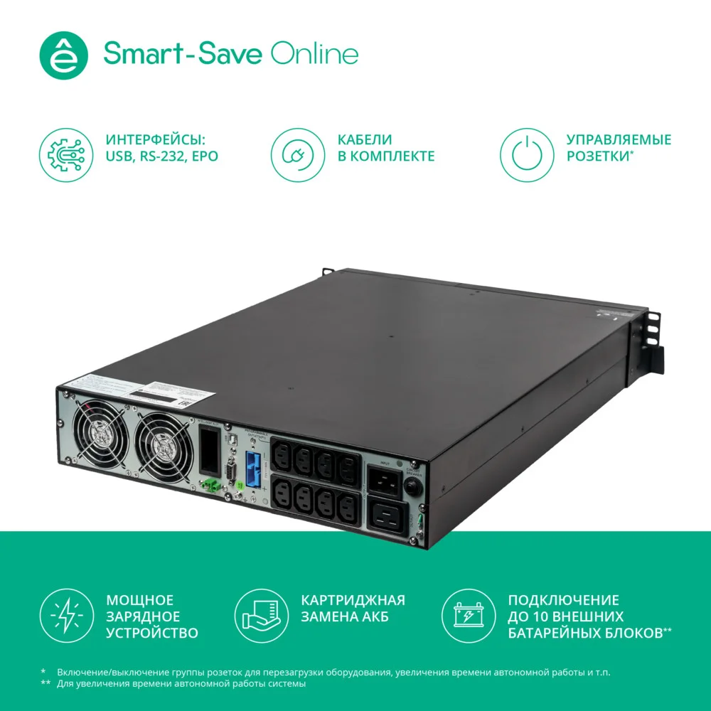 ИБП Smart – Save Online SRVSE3KRTI 3кВА/2,7кВт двойного преобразования для защиты чувствительного оборудования в малых и средних предприятиях. Имеет высокий коэффициент мощности PF=0.9. Предназначен для напольной установки или для установки в серверные стойки. Функция USB HID позволяет видеть базовую информацию о заряде ИБП на ПК без установки и/или входа в ПО. Более продвинутый LCD-дисплей в […]