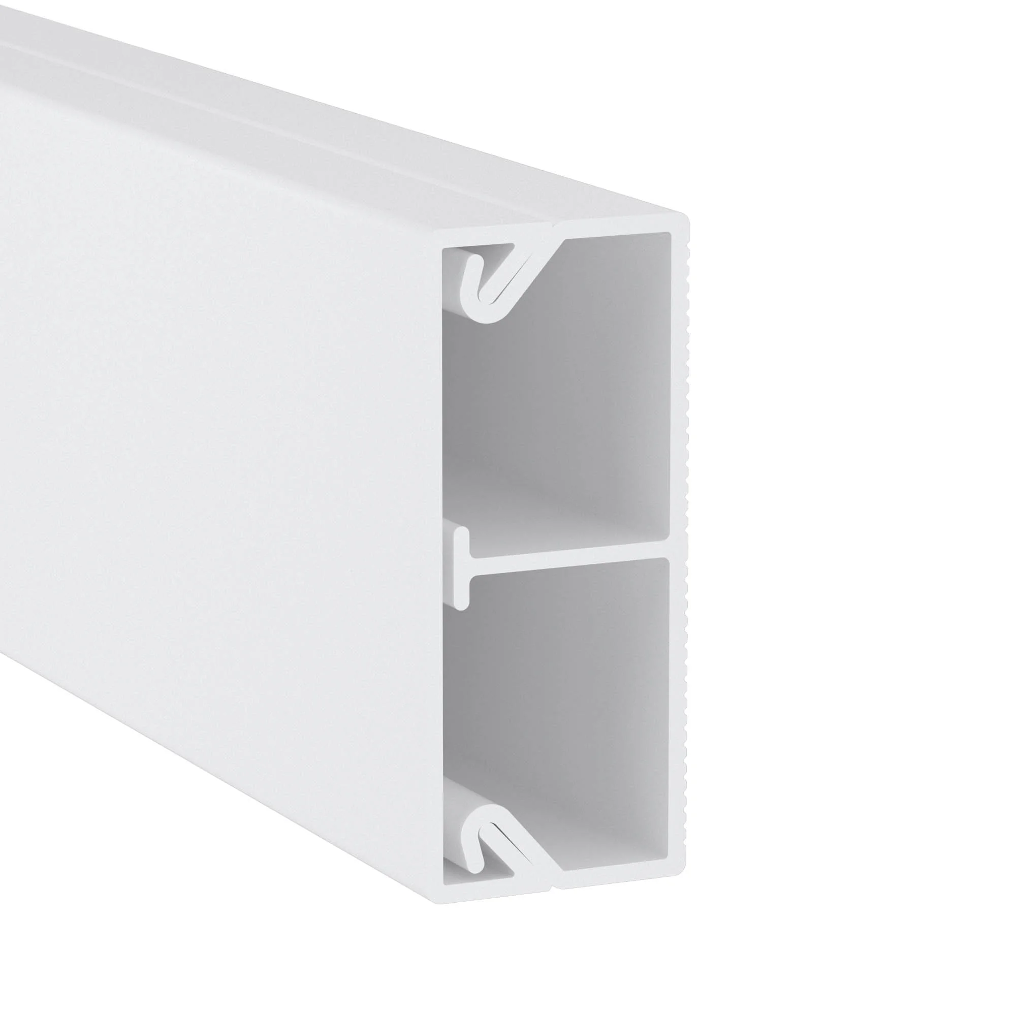 Кабельный короб 90х50мм с крышкой. Назначение: прокладка кабелей и установка ЭУИ. Характеристики: материал – алюминий; защитная пленка; возможность установки перегородки; выпускаются в отрезках длиной 2 метра. Размер 90х50. Цвет: белый RAL 9016