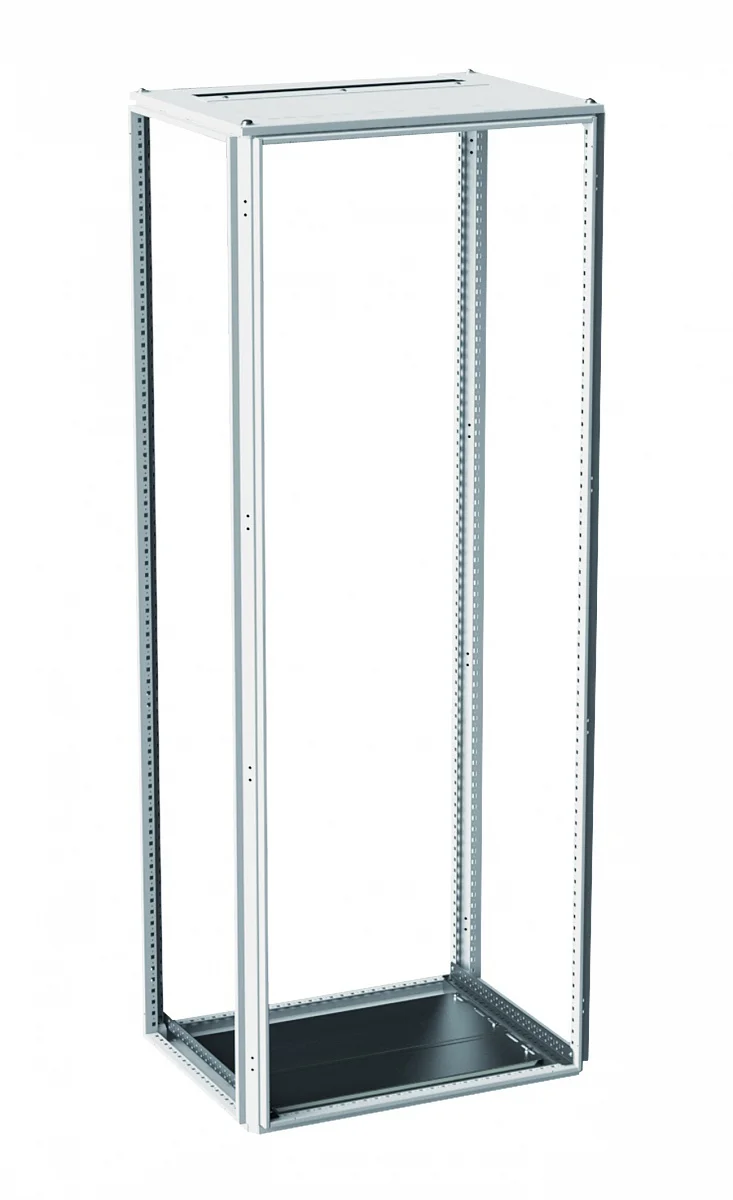Сварная открытая со всех сторон рама MF, на которую навешиваются остальные узлы. Профиля рамы не замкнуты, изготовлены из листовой стали толщиной 2,0 мм. Выполнена перфорация под закладные гайки и под саморезы с шагом 25 мм. Потолочная панель имеет вырез с щет. вводом для кабелей.