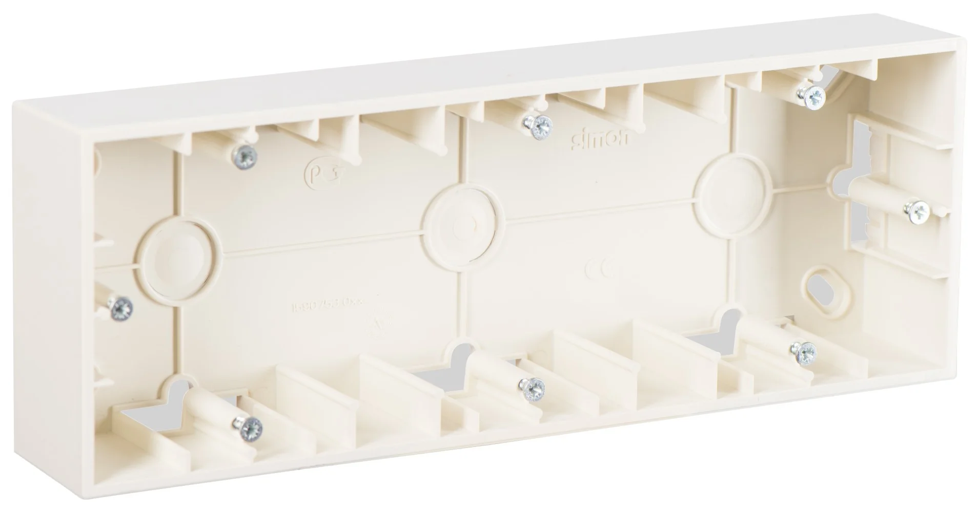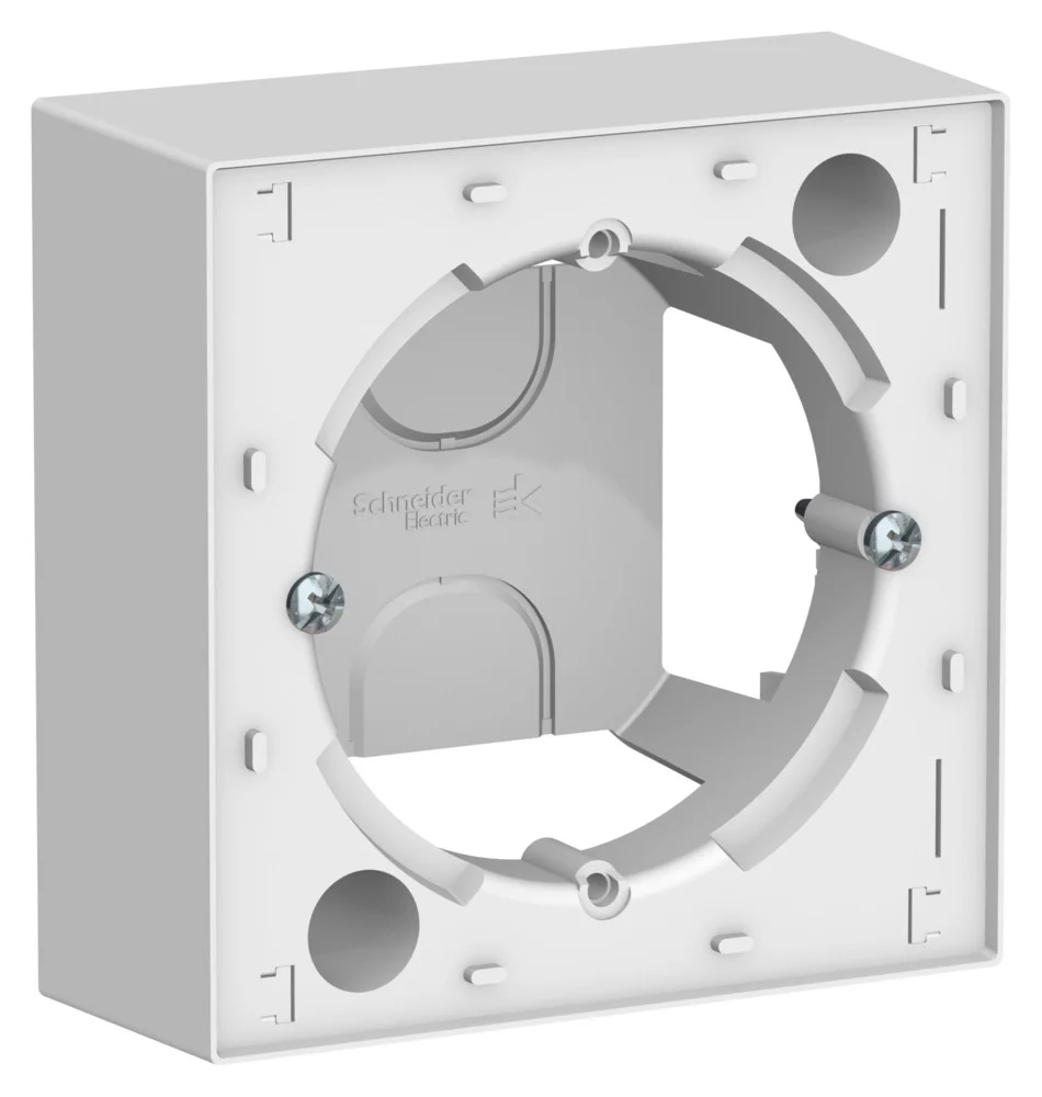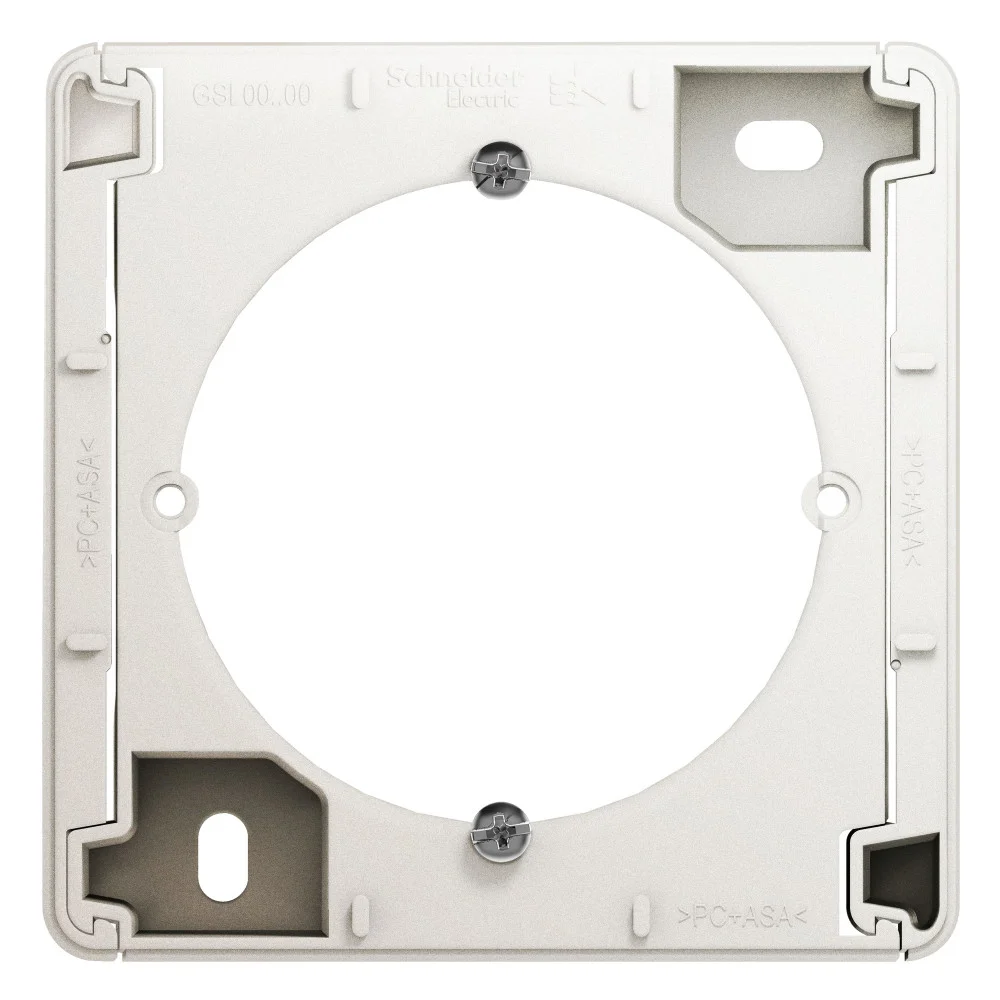 Коробка Systeme Electric (ранее Schneider Electric) серии Glossa (цвет молочный) наружного монтажа. — Позволяет установить любую функцию скрытого монтажа на стену (как изделие открытого монтажа). — Выполнена из материала PС+ASA, стойкого к УФ-излучению и появлению царапин.