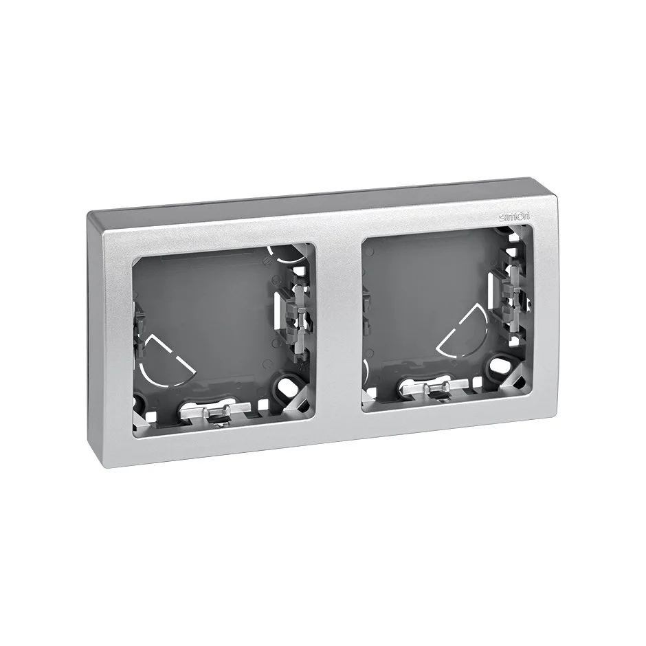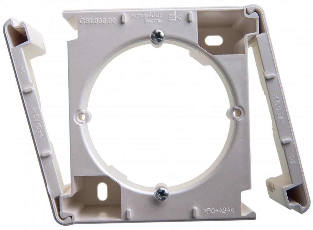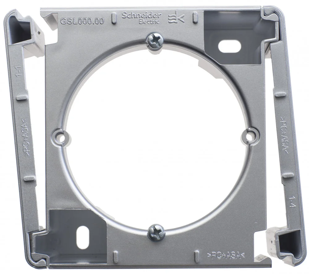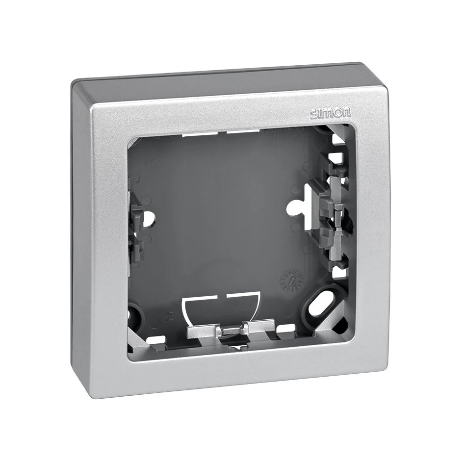 Коробка Systeme Electric (ранее Schneider Electric) серии Glossa (цвет алюминий) наружного монтажа. — Позволяет установить любую функцию скрытого монтажа на стену (как изделие открытого монтажа). — Выполнена из материала PС+ASA, стойкого к УФ-излучению и появлению царапин.