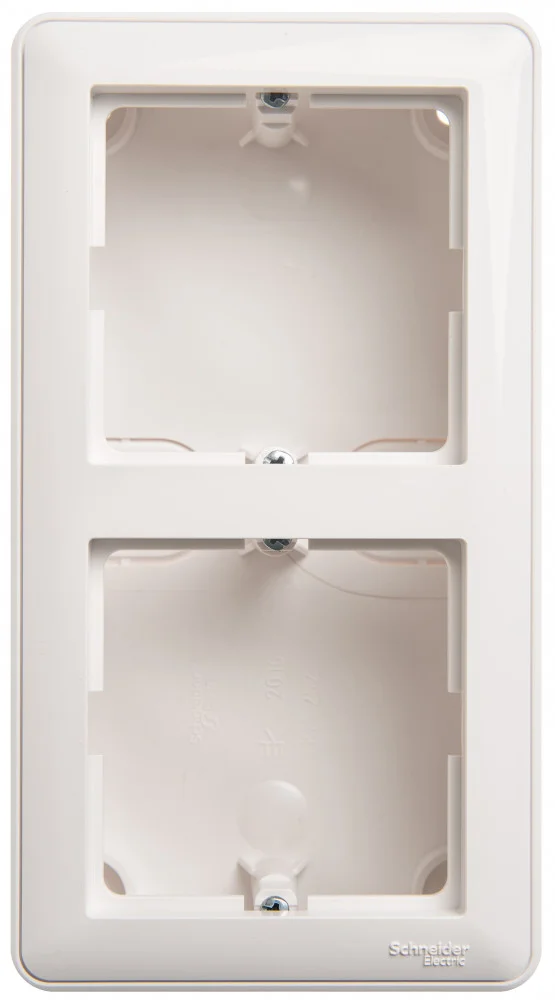 Коробка Systeme Electric (ранее Schneider Electric) W59 (цвет белый) двухместная подъемная с рамками для открытого монтажа. — Позволяет установить любую функцию скрытого монтажа на стену (как изделие открытого монтажа) . — Корпус изделия выполнен из высококачественного ABS-пластика.