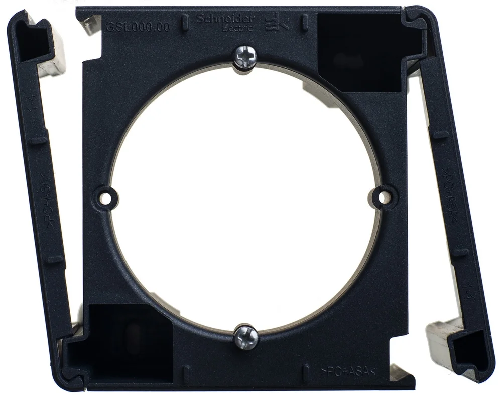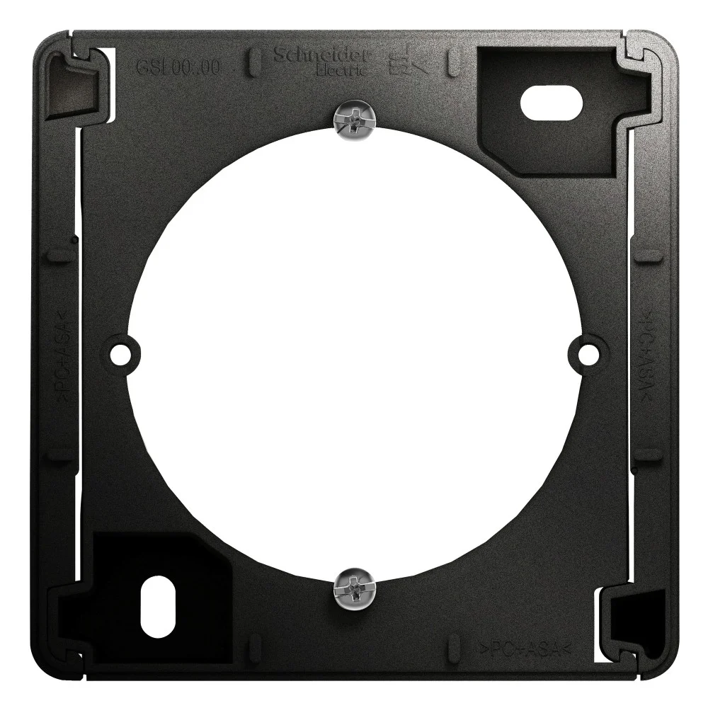 Коробка Systeme Electric (ранее Schneider Electric) серии Glossa (цвет антрацит) наружного монтажа. — Позволяет установить любую функцию скрытого монтажа на стену (как изделие открытого монтажа). — Выполнена из материала PС+ASA, стойкого к УФ-излучению и появлению царапин.