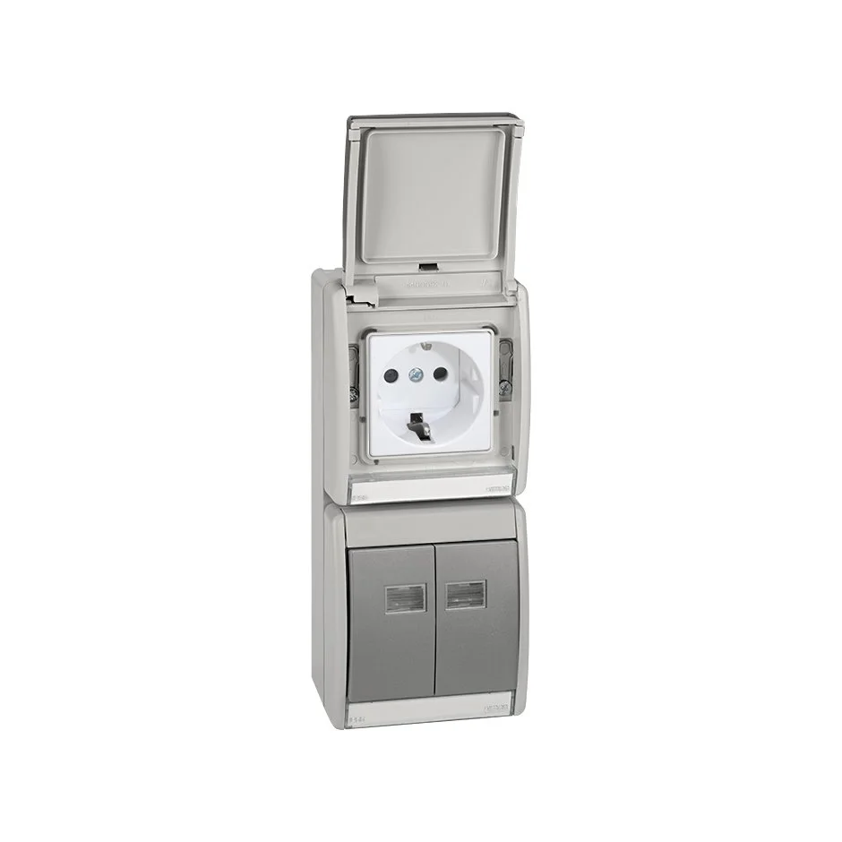 Назначение — установка розеток скрытого монтажа через сквозные отверстия внутри коробки. Степень защиты IP67.