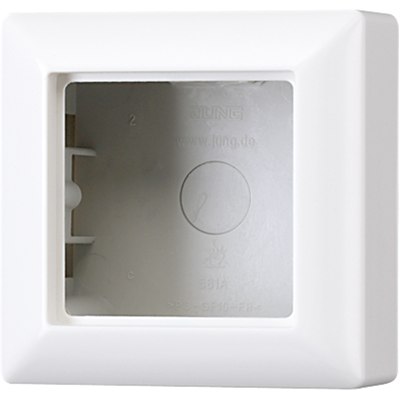 Коробка Systeme Electric (ранее Schneider Electric) серии Glossa (цвет платина) наружного монтажа. — Позволяет установить любую функцию скрытого монтажа на стену (как изделие открытого монтажа). — Выполнена из материала PС+ASA, стойкого к УФ-излучению и появлению царапин.
