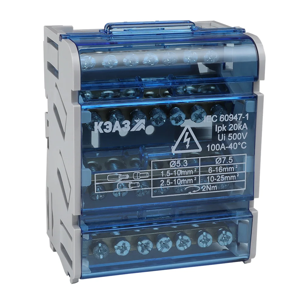 Предназначен для структурированного подключения отводных линий, разведения входящего проводника на несколько потребителей или участков. Позволяет создать упорядоченные системы распределения в электрощитах. Корпус блока выполнен из не поддерживающего горение полиамида PA6.6 и 4-х токоведущих шин в блоках 100 А, представляющие собой бруски из латуни с 7-ю отверстиями, в которые вставляются провода и зажимаются винтом. Избежать случайного […]