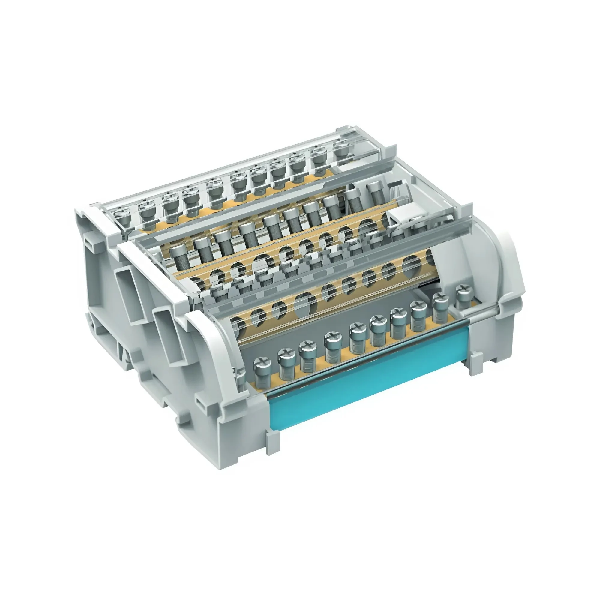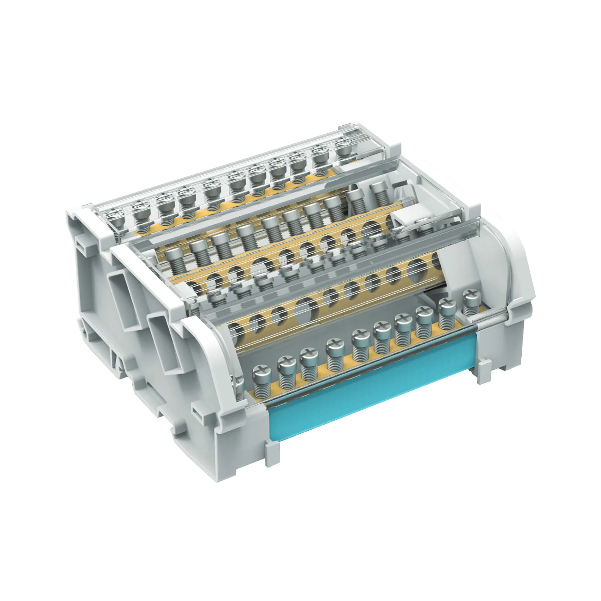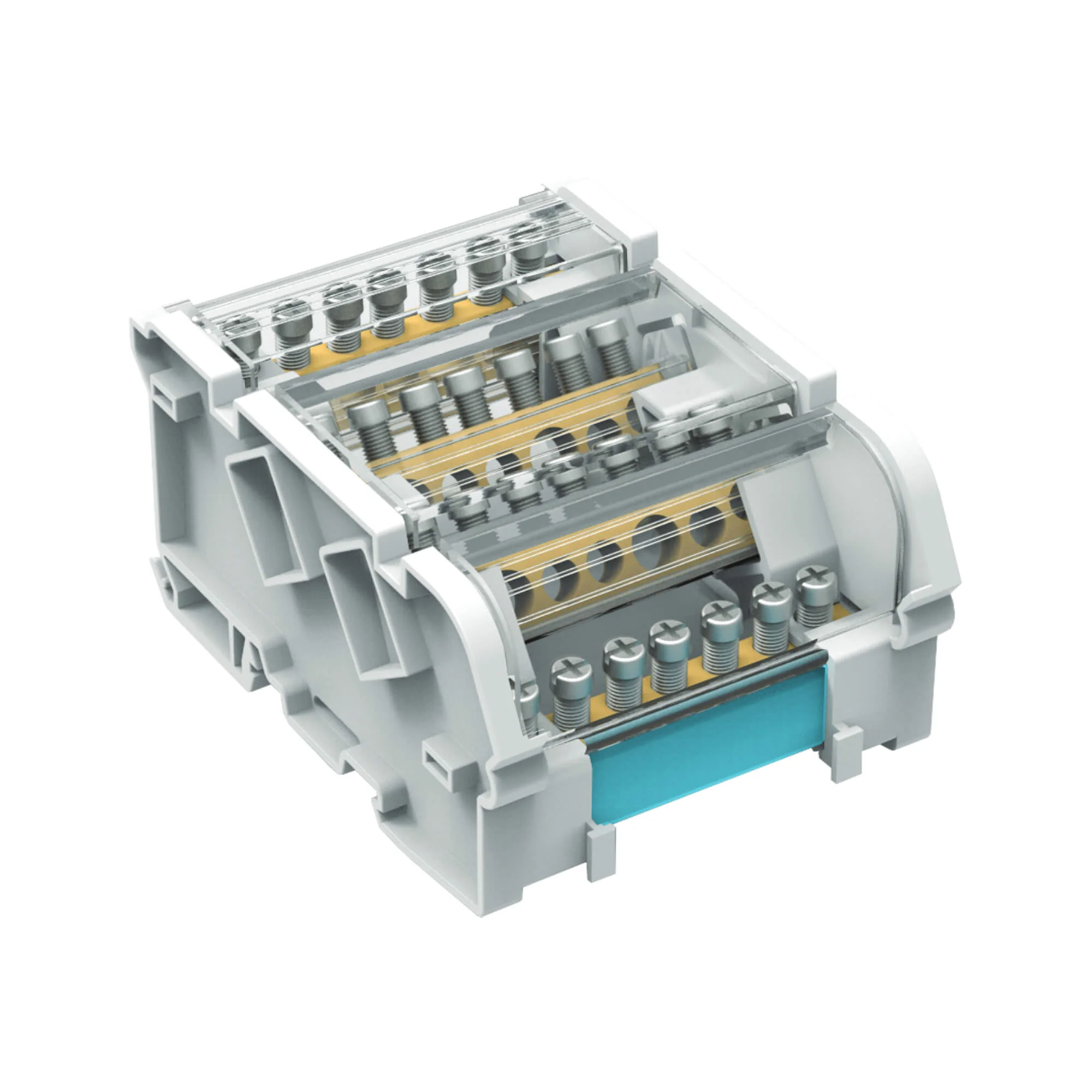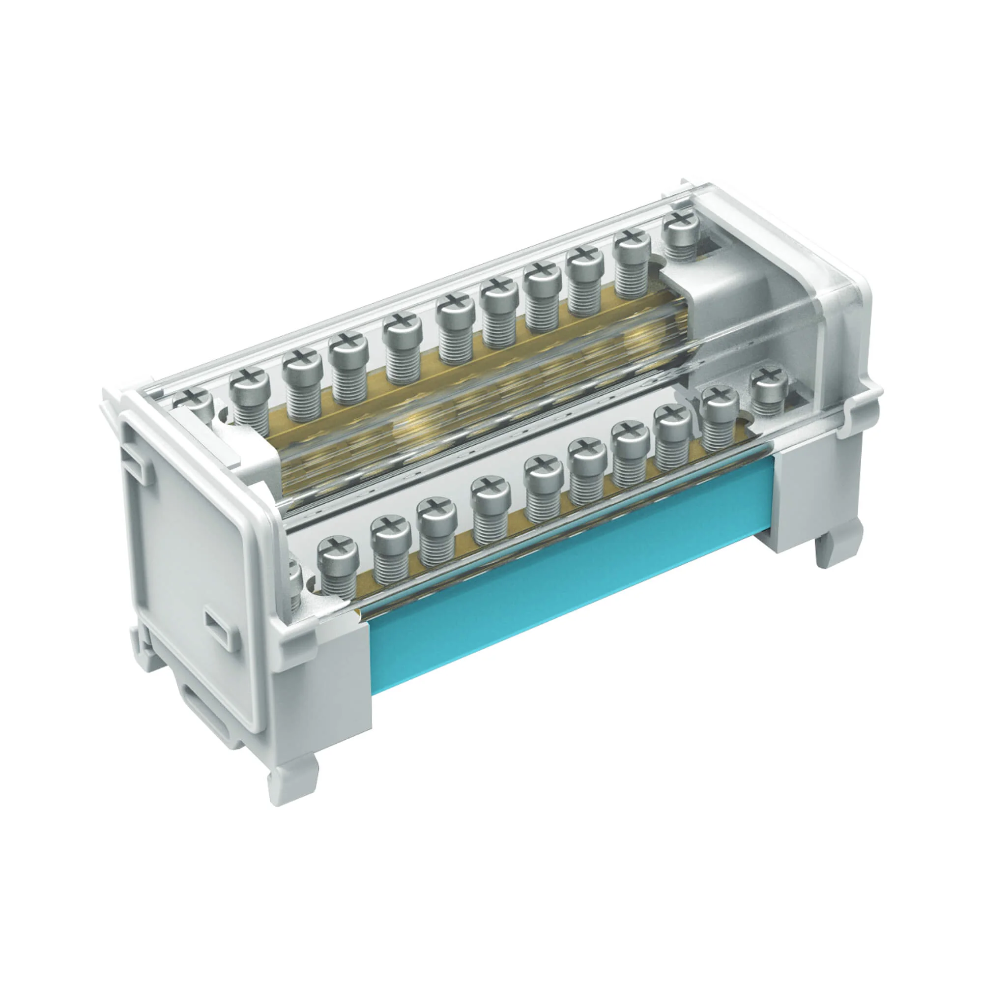 Предназначен для структурированного подключения отводных линий, разведения входящего проводника на несколько потребителей или участков. Позволяет создать упорядоченные системы распределения в электрощитах. Корпус блока выполнен из не поддерживающего горение полиамида PA6.6 и 2-х токоведущих шин в блоках 125 А, представляющие собой бруски из латуни с 15-ю отверстиями, в которые вставляются провода и зажимаются винтом. Избежать случайного […]