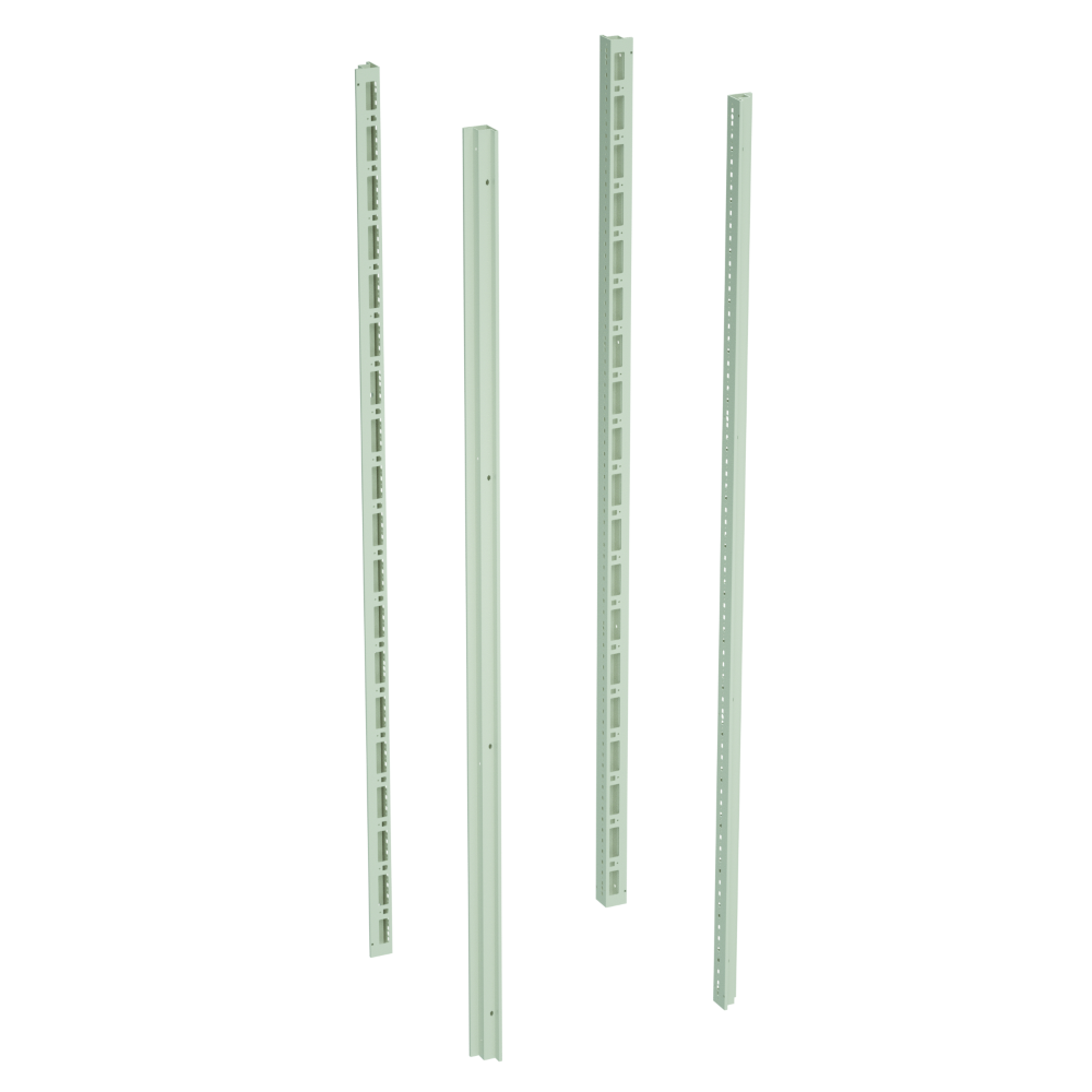 Вертикальные стойки являются основным конструктивным элементом при сборке корпуса, обеспечивающим его структурную целостность и необходимую прочность. Предназначены для формирования несущего каркаса шкафов и крепления оборудования. Материал — оцинкованная сталь 1,5 мм с порошковым покрытием цвета RAL7035. Высота: 1000 мм.