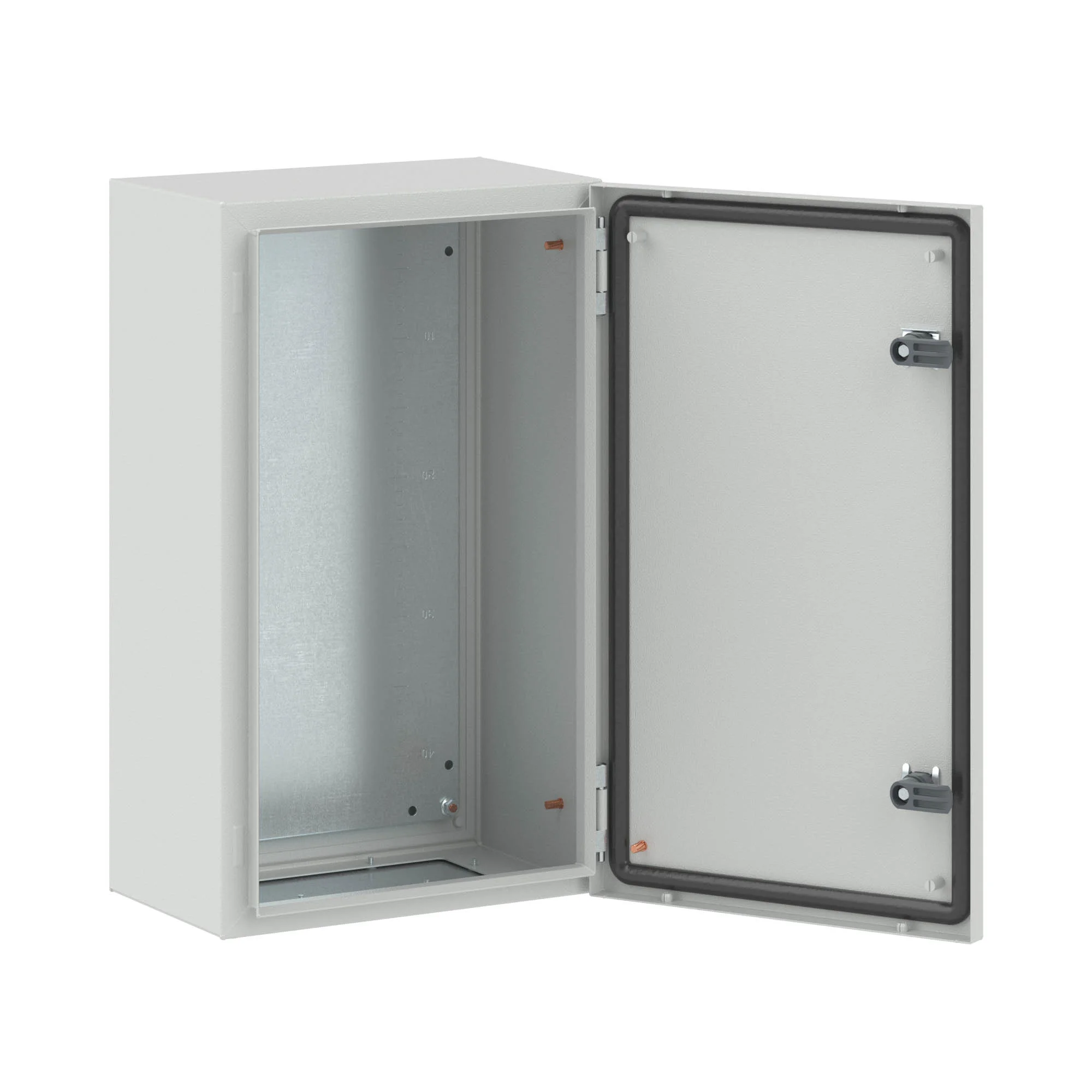 Навесные корпуса ST предназначены для систем автоматизации и распределения электроэнергии. Корпус, дверь, фланец изготавливаются из стали толщиной 1,2 мм с атмосферостойким порошковым покрытием, цвет RAL7035. Монтажная плата — из оцинкованной стали толщиной 1,8 мм. Степень защиты IP66, ударопрочность IK10, сейсмостойкость 9 баллов по шкале MSK-64, климатическое исполнение УХЛ1, ОМ2, ОМ3, группа горючести Г1. Комплект поставки: […]