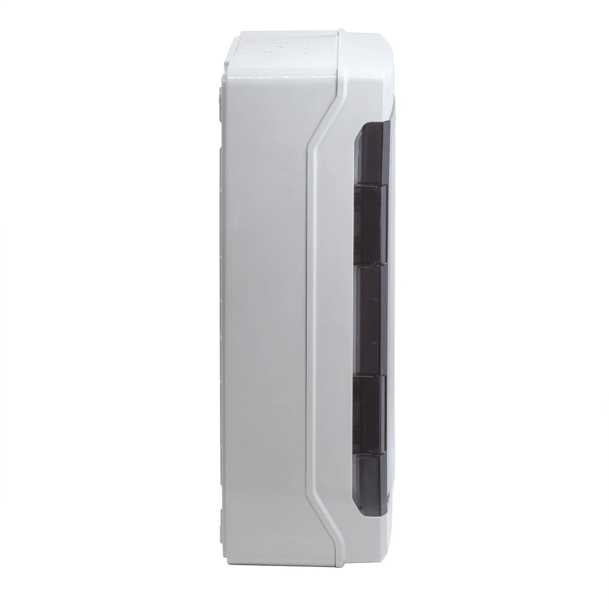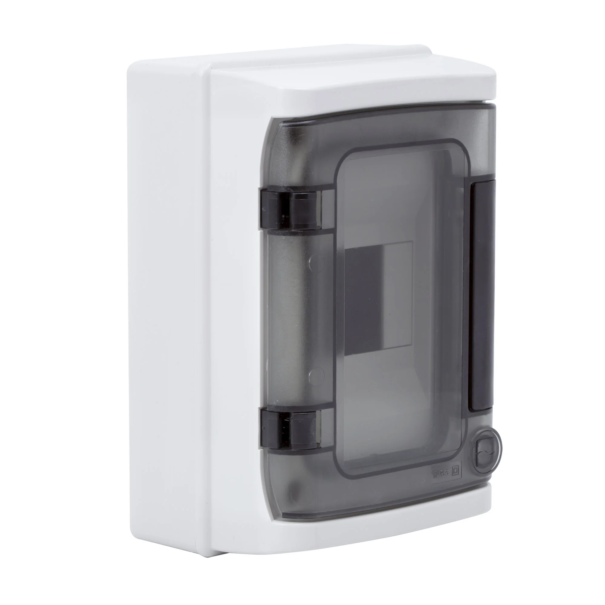 Настенный модульный щиток с прозрачной затемненной дверцей. Предназначен для монтажа в жилых и административных помещениях для установки автоматических выключателей любых производителей: таймеров, устройств защитного отключения и управления освещением и т.д. В комплект поставки входят: ручка на дверце, оцинкованная DIN-рейка, заглушки для пустых модулей, сборочные винты. Степень пыле- и влагозащиты IP 65. Ударопрочность корпуса IK09. Количество […]