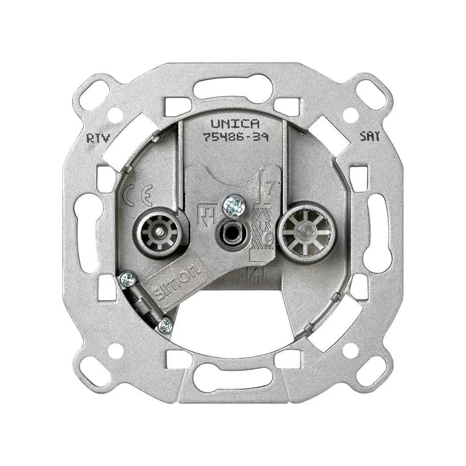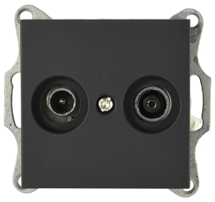 ТВ розетка проходная (без согласующего сопротивления). Назначение: подключение телевизионного кабеля. Кол-во модулей: 1. Цвет: белый