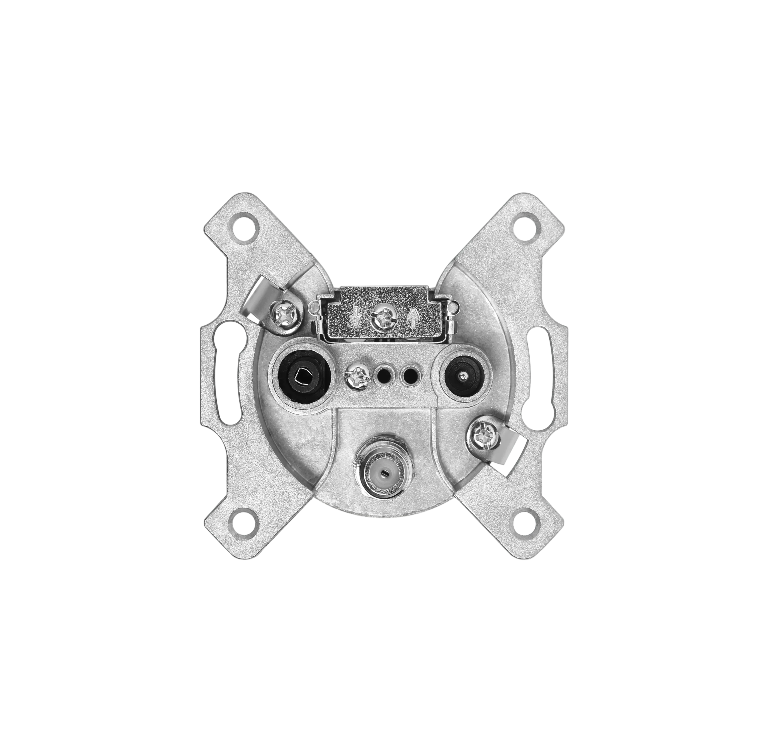 Механизм Systeme Electric (ранее Schneider Electric) серии Glossa (цвет алюминий) розетки TV проходной 4DB ппредназначен для подключения телевизора к телевизионной сети. — Проходная розетка используется в начале и середине подключения «в линию». — Выполнен из материала PС+ASA, стойкого к УФ-излучению и появлению царапин.