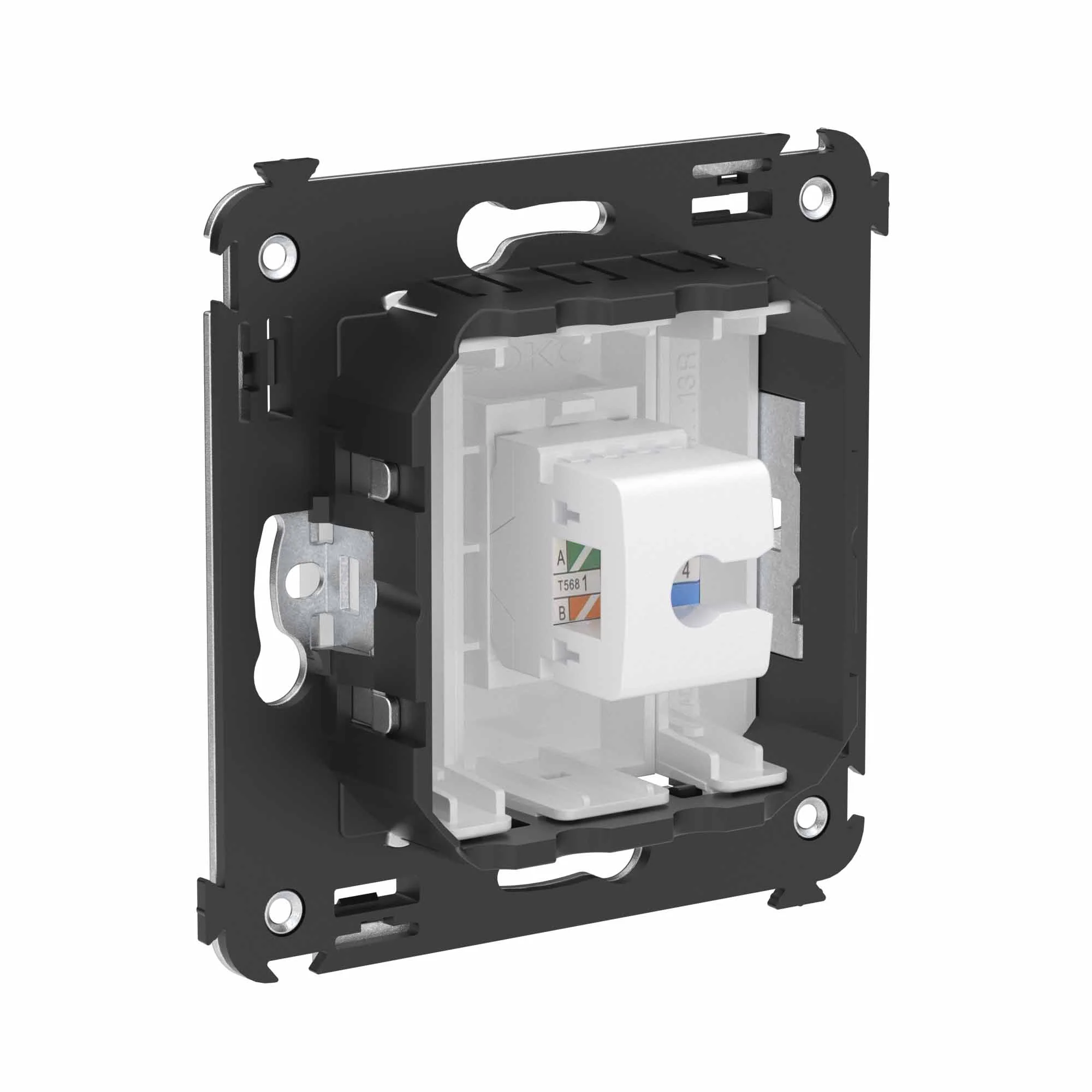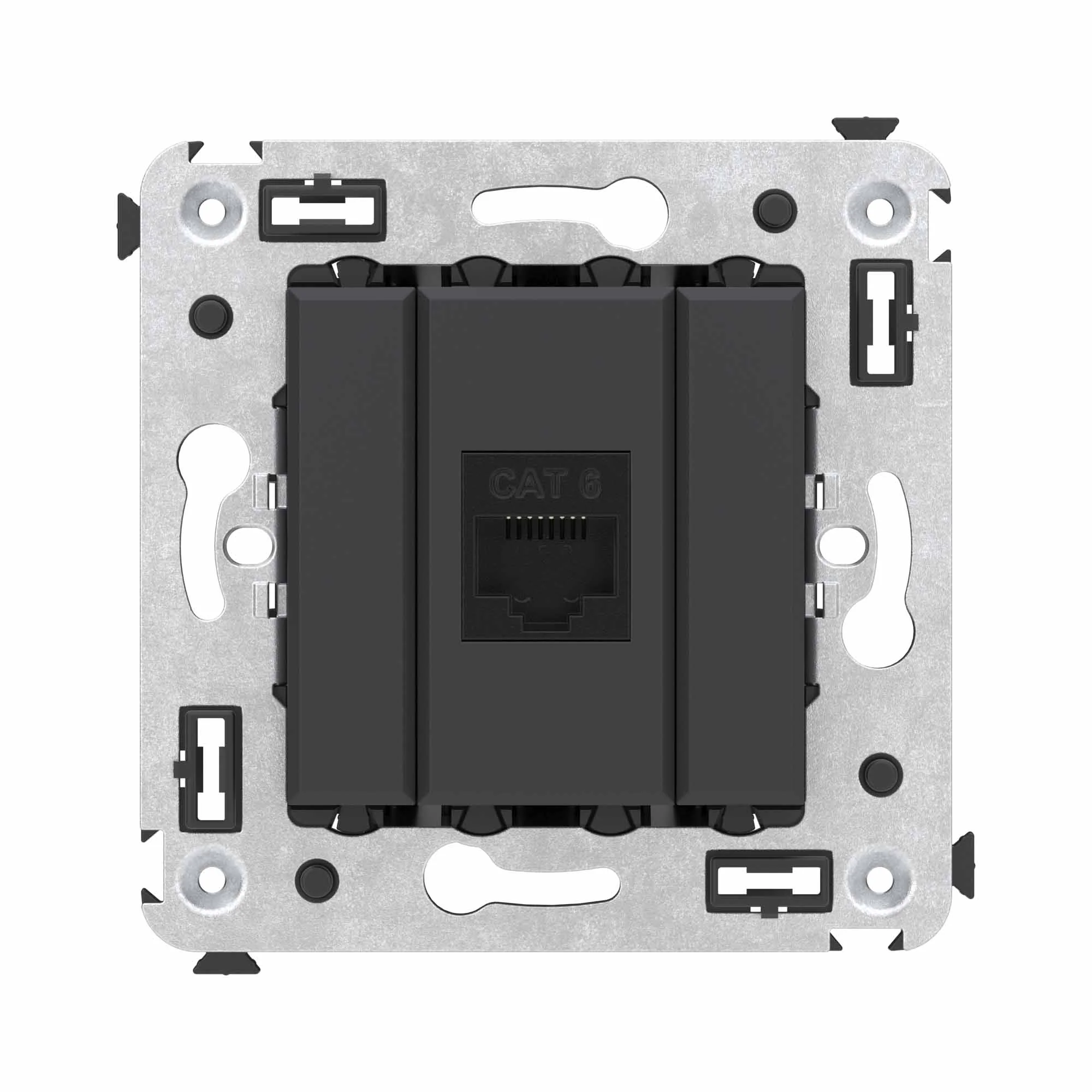 Компьютерная розетка используется для подключения компьютерной техники и соединения с патч-панелью, предназначена для скрытого монтажа в стену, поставляется в комплекте с суппортом. Розетка RJ-45 категории 6 может использоваться для организации сетей с частотой до 250 МГц и передавать данные на большие расстояния. Материал розетки – металл, термопласт. Пластиковые детали изделия выполнены в цвете «Черный матовый»