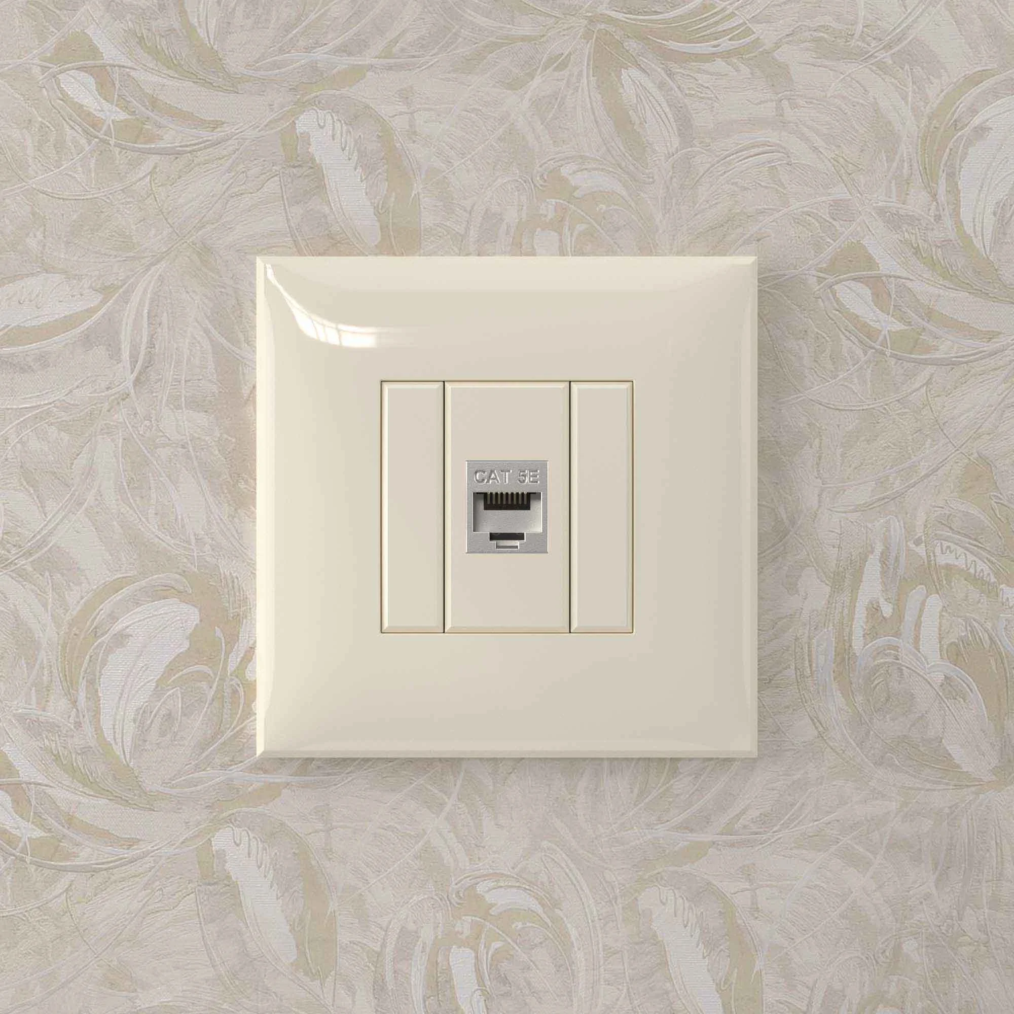 DKC Avanti Компьютерная розетка RJ-45 без шторки в стену, кат.5e одинарная экранированная, «Ванильная дымка»