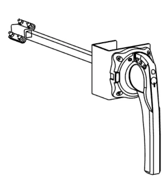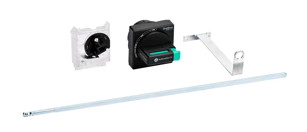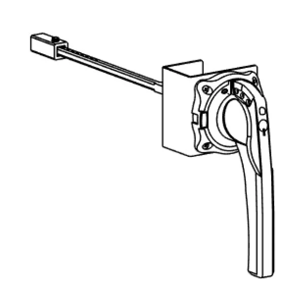 Выносная поворотная рукоятка выключателей-разъединителей серии SystemePact SP SD на ток 630 А; установка – боковая слева на стенку щита; цвет – черная. Поворотная рукоятка обеспечивает управление выключателем-разъединителем при замыкании и размыкании электрических цепей в распределительных щитах.