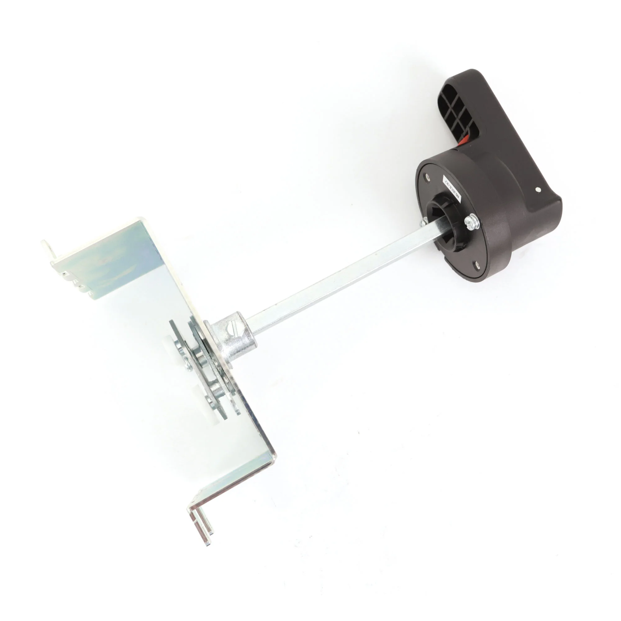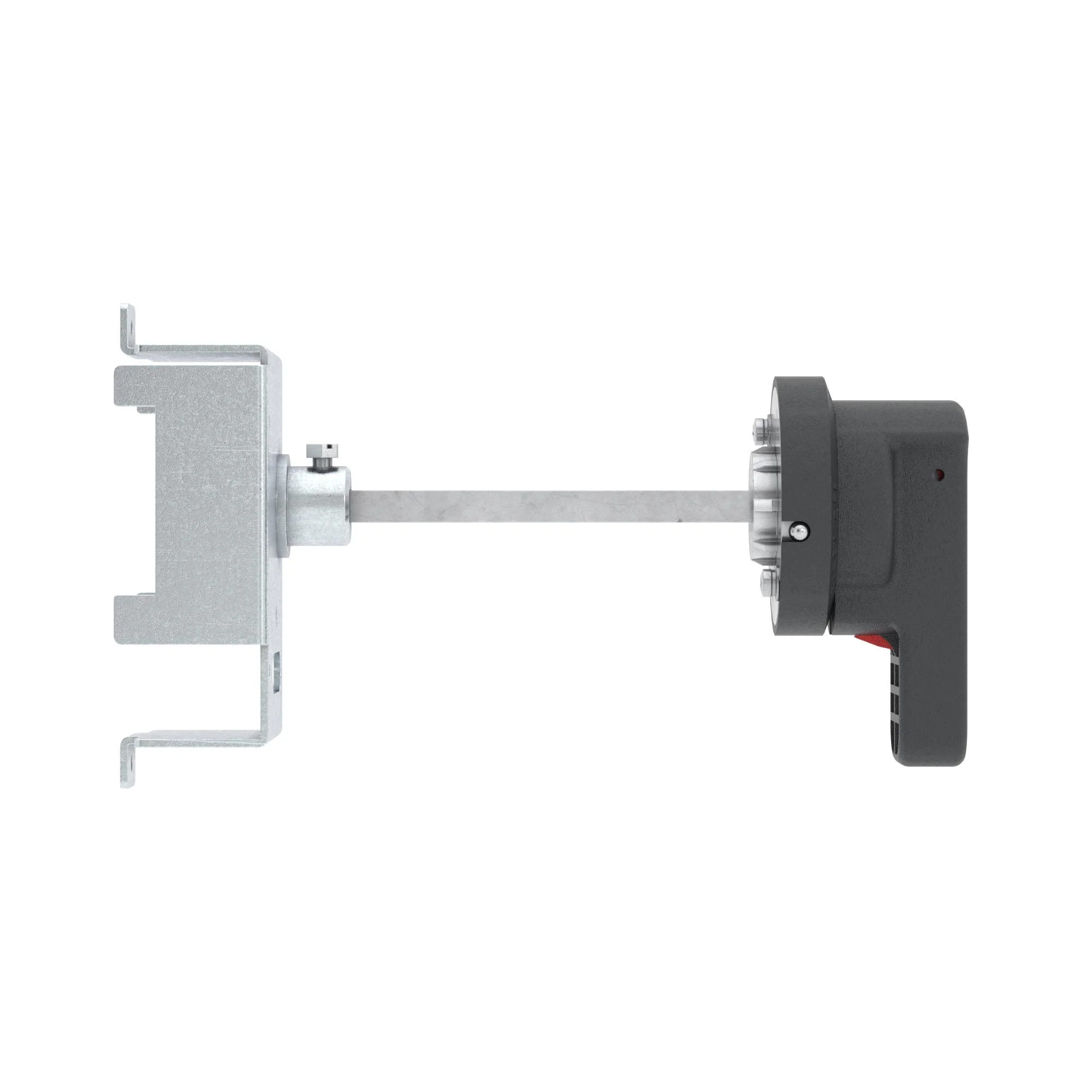 Комплект установки рукоятки на переднюю панель/дверь шкафа для управления автоматическим выключателем DMP32. В комплект входит черная рукоятка со степенью защиты IP65 и блокировкой до 3 замков, регулируемый вал 150 или 300 мм и монтажная скоба для фиксации на выключателе.