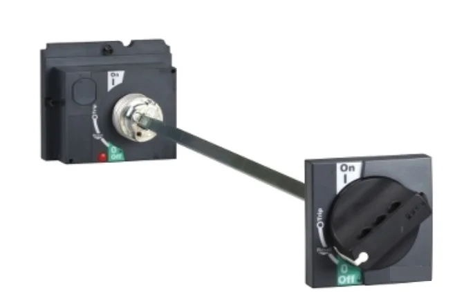 Выносная поворотная рукоятка позволяет управлять автоматом SystemePact CCB, установленным внутри шкафа не открывая двери. Устанавливается на дверцу шкафа. Применяется в случаях, когда нужно ограничить доступ к автомату или оборудованию шкафа, но оставить возможность управления автоматом. Кроме того, рукоять не дает открыть дверь при включенном автомате. Длина штока43,8см.