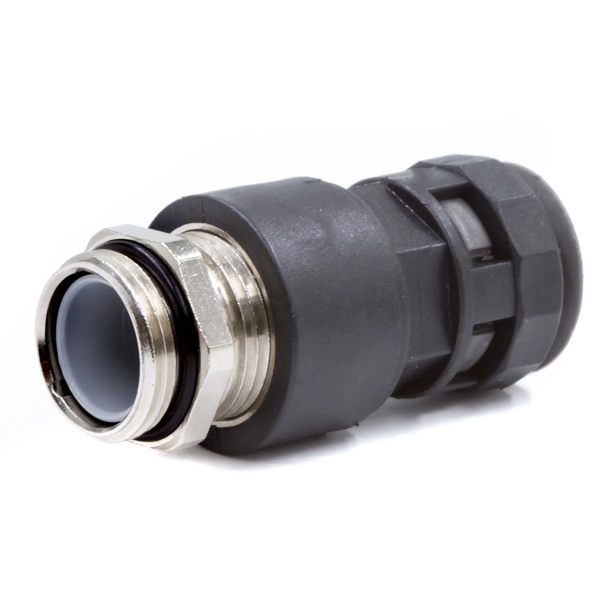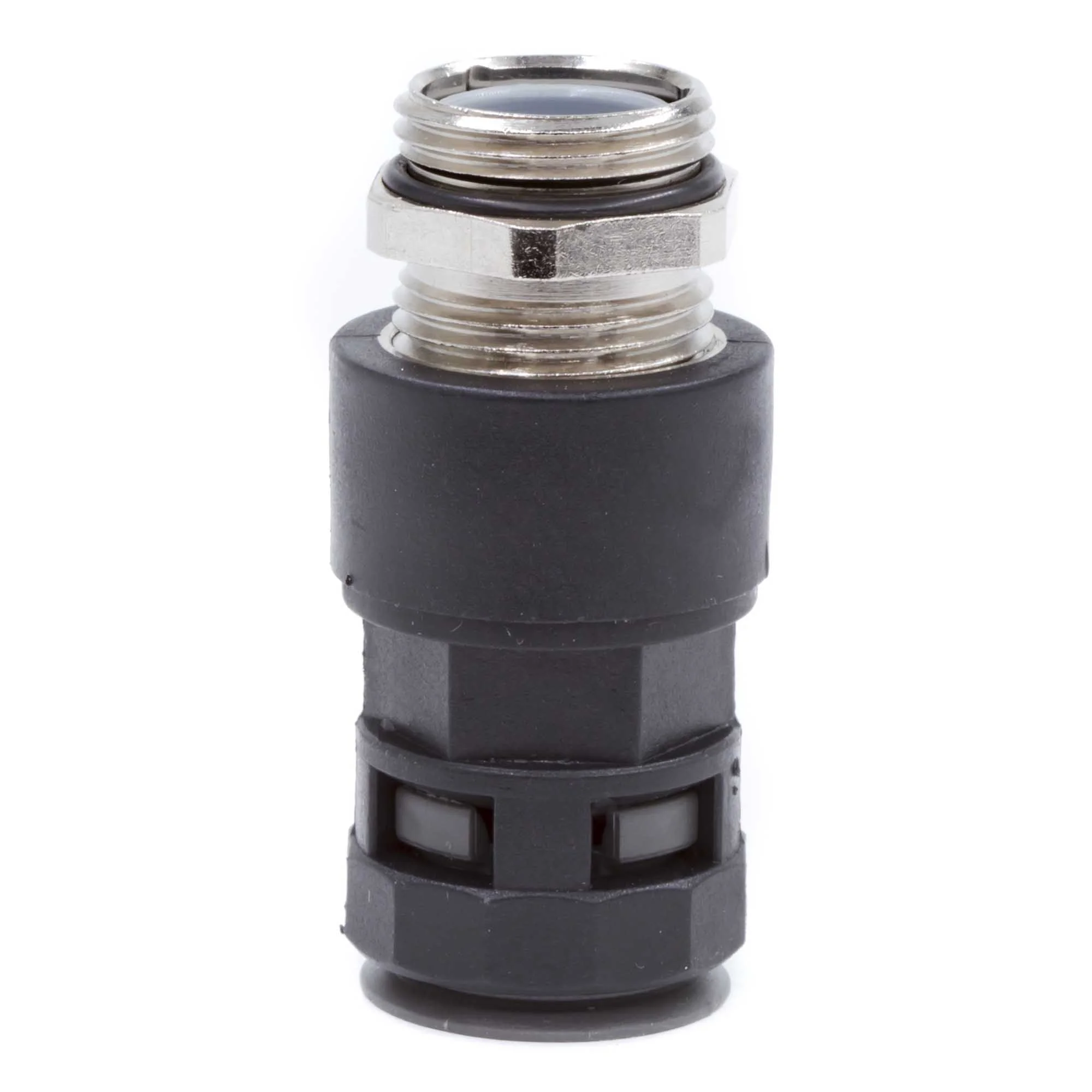 Муфта металлорукав-коробка DN 20 М20х1,5 с уплотнением кабеля конструктивно представляет собой одновременно и муфту, и герметичный кабельный зажим. Аксессуар используется для герметичного (до IP 68) ввода металлорукава в корпус оборудования, распаечной коробки, щитка и т.п. Совместим с кабелем диаметром 11-16 мм.