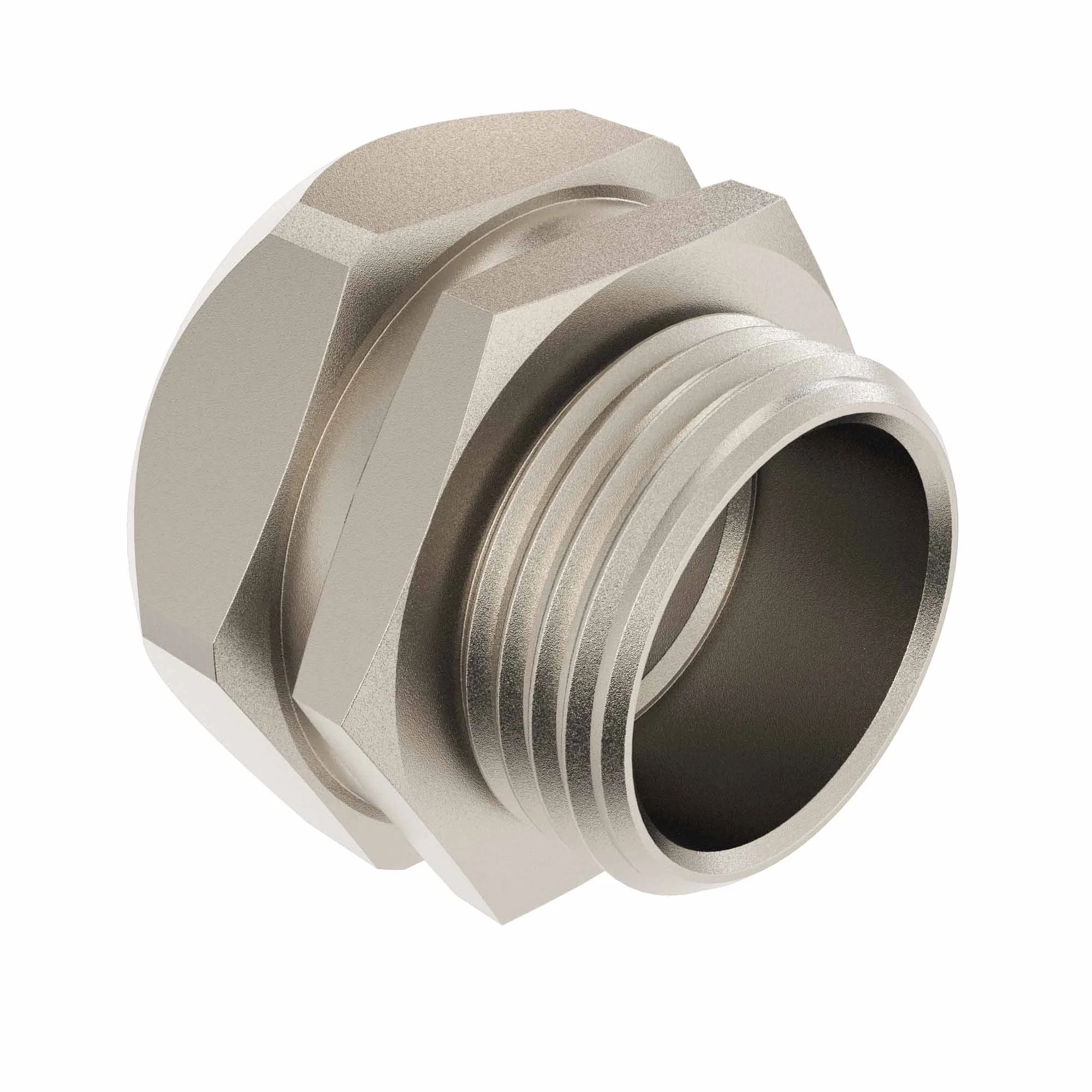 Муфта используется для соединения жесткой металлической трубы с коробкой. Она обеспечивает высокую степень герметизации — IP 66-67. Материал аксессуара — никелированная латунь, — имеет высокую устойчивость к коррозии. Муфта совместима с трубами диаметром 40 мм.