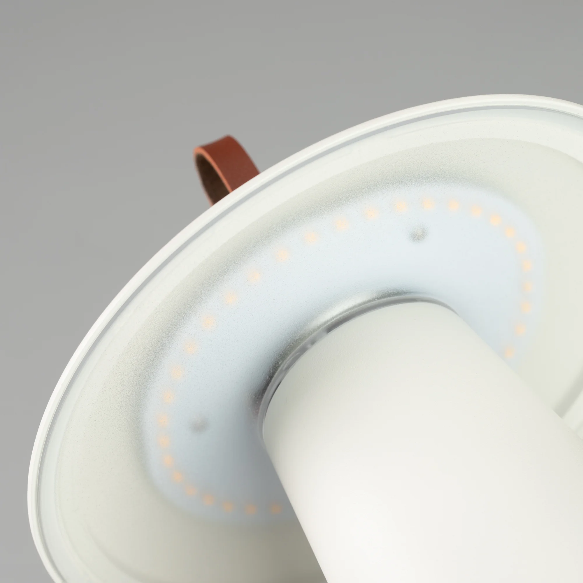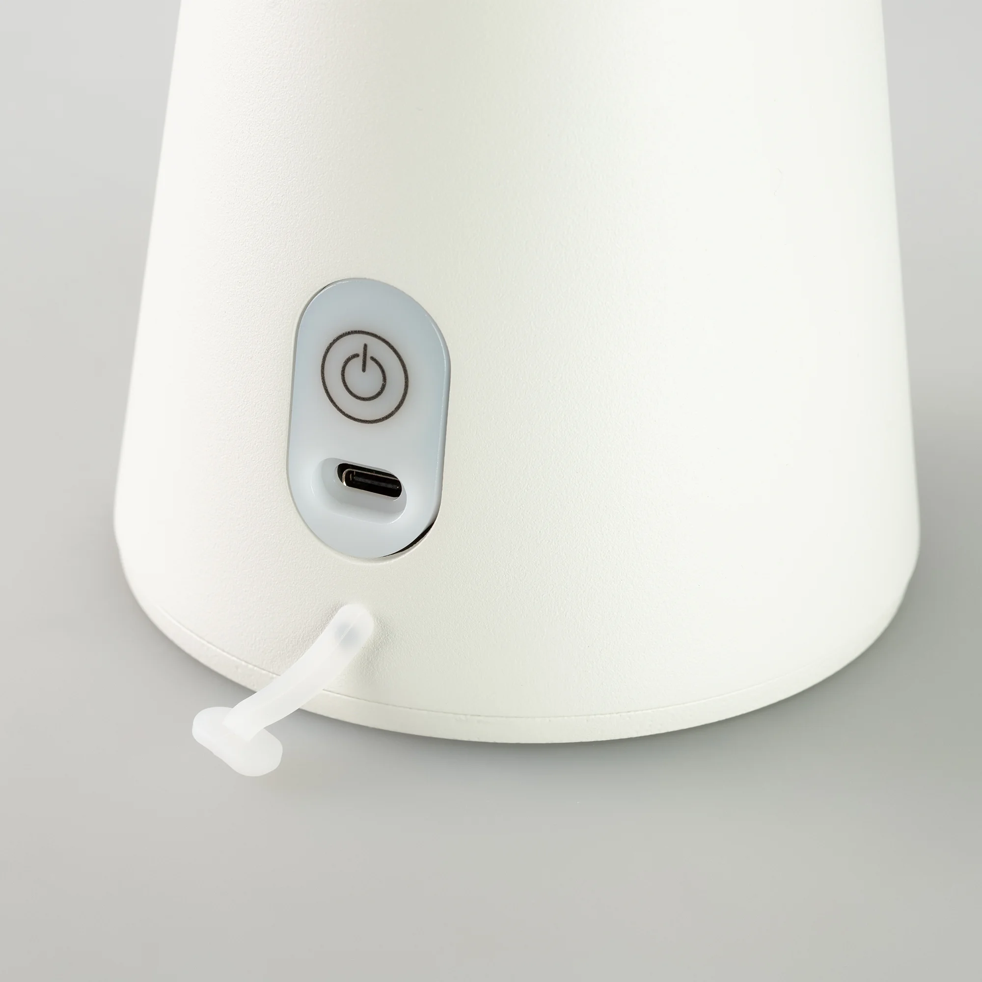 Настольный светильник со встроенным аккумулятором 2Вт, белый алюминиевый корпус. Цвет ТЕПЛЫЙ БЕЛЫЙ 3000K, св.поток 260лм, CRI(Ra)>80, угол 127°. Размер Ф197×292мм. IP54. Зарядка от сети переменного тока AC220-240V. Тип встроенного аккумулятора 4400мАч Li-ion, напряжение батареи 3.7V