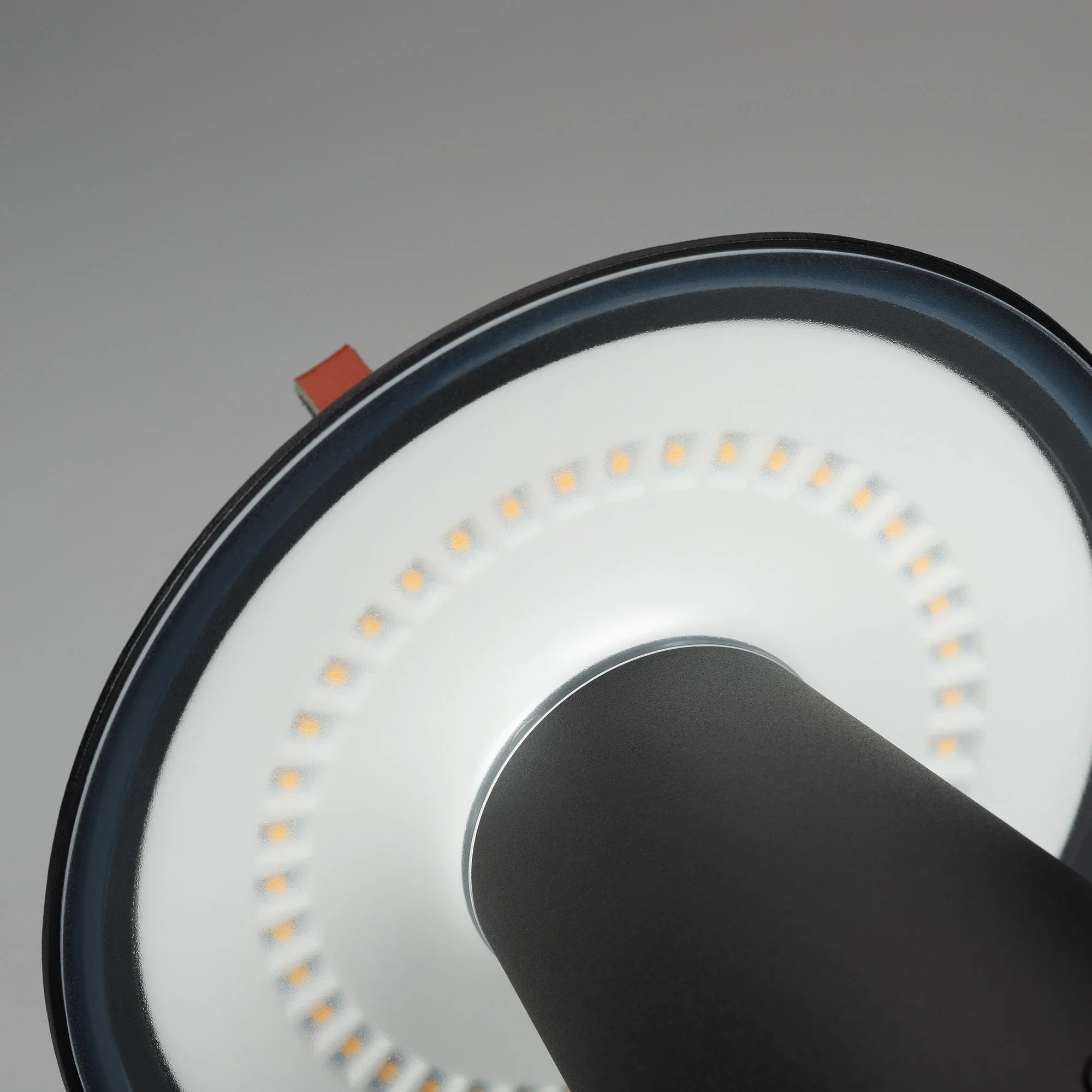 Минималистичные светильники Arper обеспечат эффективную подсветку нужной зоны не перегружая интерьер. Источником света являются светодиоды, три линзы создают угол рассеивания 60°, что позволяет оптимально осветить поверхность, не создавая светового загрязнения. Плафон светильников имеет поворотный механизм для еще большего комфорта. Светильники представлены в черном и латунном цветах.