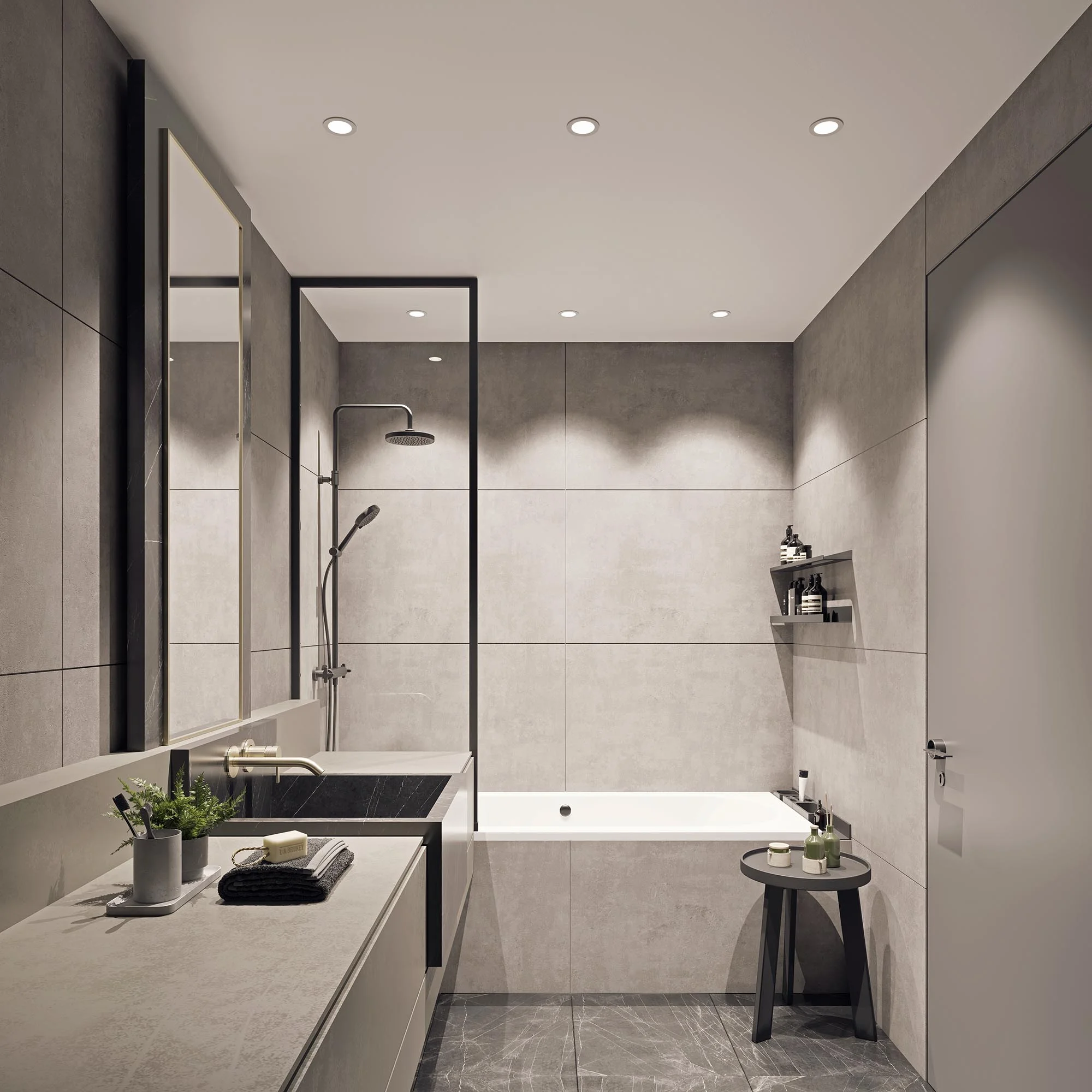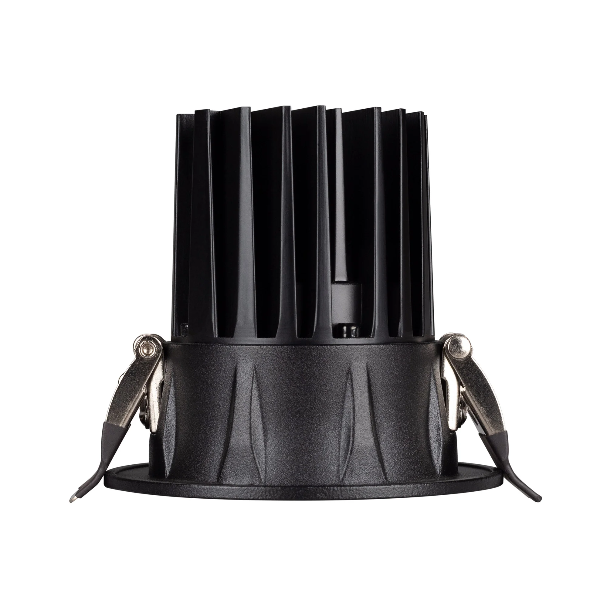 Встраиваемый светильник даунлайт. Мощность 10 Вт, св. поток 910 лм, 90 лм/Вт, дневной 4000 K, CRI>90, угол 60°, напряжение питания 230 В. Чёрный круглый корпус из алюминия, экран PMMA, степень защиты IP54. Размер: диаметр 86 мм, высота 80 мм. Монтаж встраиваемый, установочное отверстие: диаметр 80 мм. Драйвер IP54, 20-40 В, 250 мА, пульсация <1%.