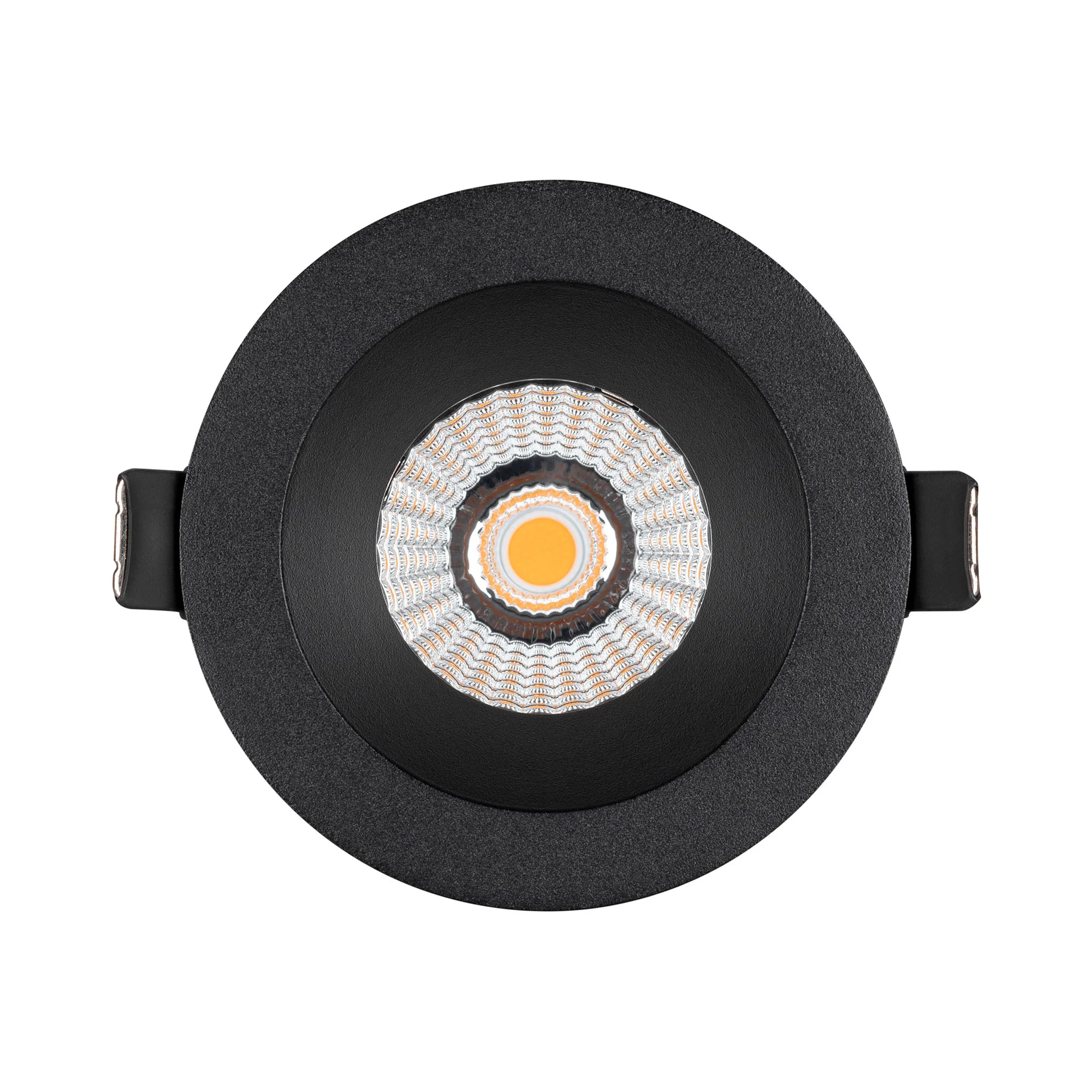 Встраиваемый светильник даунлайт. Мощность 10 Вт, св. поток 880 лм, 88 лм/Вт, тёплый 3000 K, CRI>90, угол 60°, напряжение питания 230 В. Черный круглый корпус из алюминия, экран PMMA, степень защиты IP54. Размер: диаметр 86 мм, высота 80 мм. Монтаж встраиваемый, установочное отверстие: диаметр 75 мм. Драйвер IP54, 20-40 В, 250 мА, пульсация <1%.