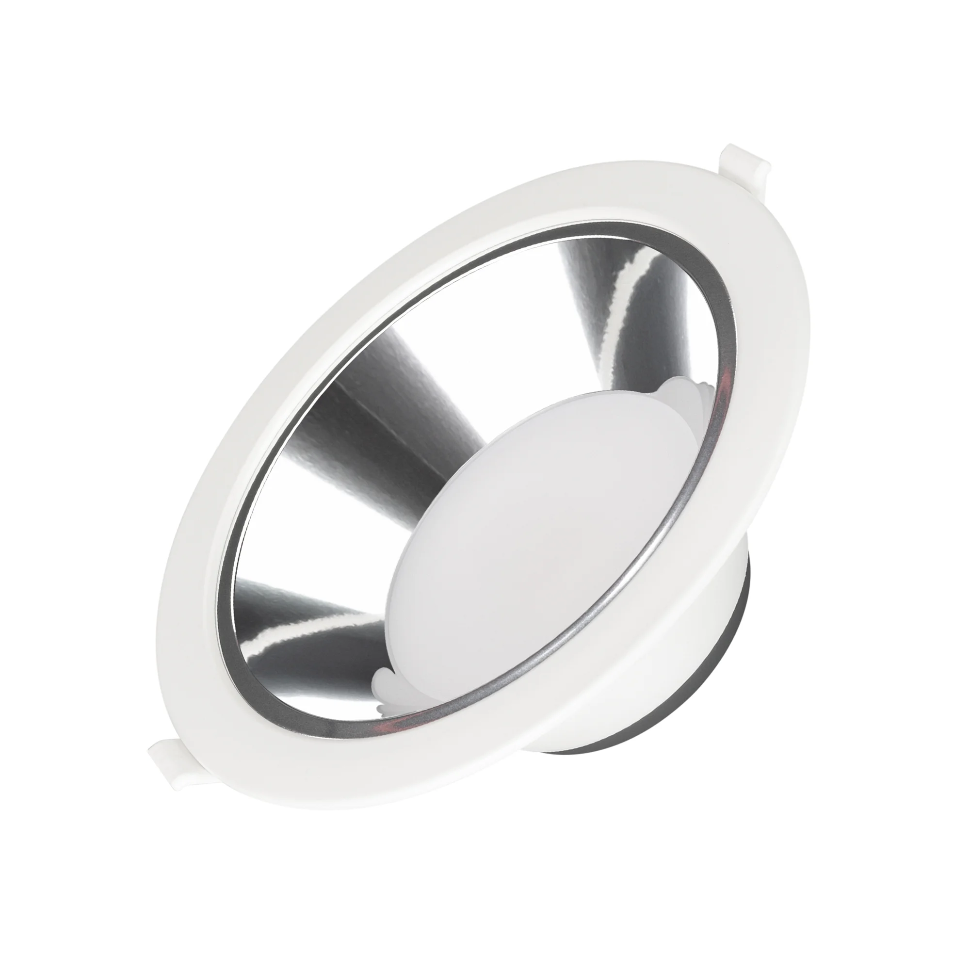 Светильник даунлайт с изменяемой цветовой температурой и переключателем на корпусе. Мощность 28 Вт, св. поток 3000 лм, 108 лм/Вт, белый 6000К, или дневной 4000К, или теплый 3000К (выбор цвета свечения при установке, фиксированный), CRI>80, угол 80°, напряжение питания 230 В. Белый круглый корпус из алюминия, степень защиты IP20. Размер: диаметр 232 мм, высота 83 мм. […]