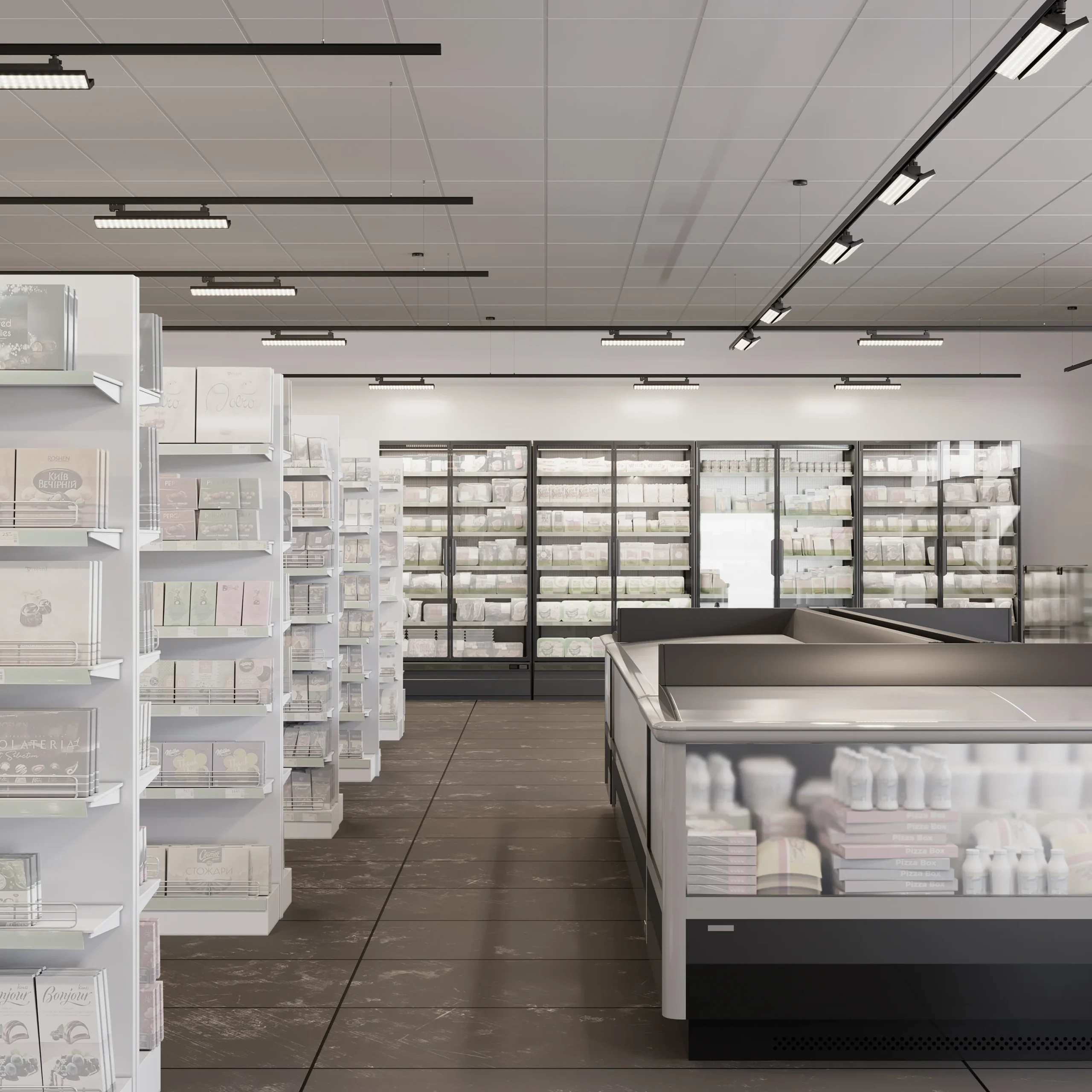 Светильник для треков/шин 4 провода. Мощность 50 Вт, св. поток 5160 лм, 109 лм/Вт, дневной 4000 K, CRI>90, изменяемый угол 60-130°, напряжение питания 230 В. Черный корпус из алюминия, материал рассеивателя PC, степень защиты IP20. Размер: длина 582 мм, ширина 138 мм, высота 110 мм. Монтаж на трек 3-фазный. Драйвер 27-40 В, 1400 мА, пульсация […]