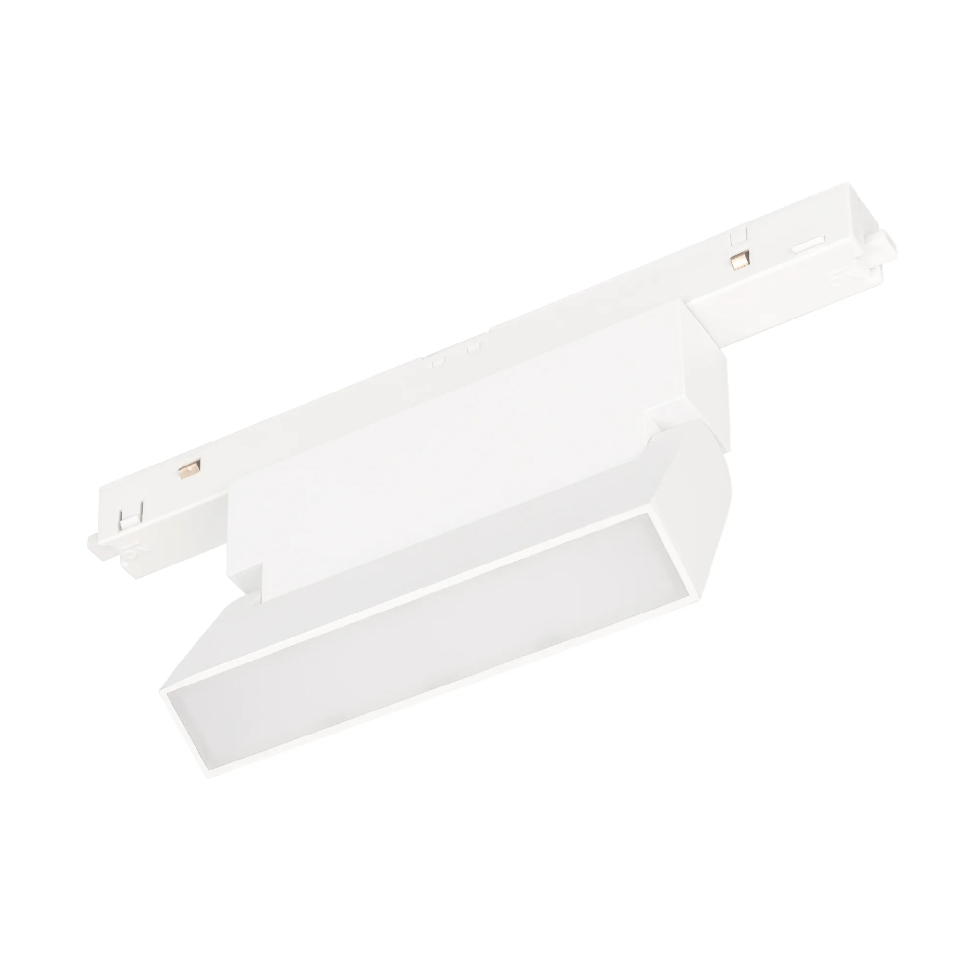 Светильник для треков/шин 4 провода. Мощность 50 Вт, св. поток 5160 лм,109 лм/Вт, дневной 4000 K, CRI>90, изменяемый угол 60-130°, напряжение питания 230 В. Белый корпус из алюминия, материал рассеивателя PC, степень защиты IP20. Размер: длина 582 мм, ширина 138 мм, высота 110 мм. Монтаж на трек 3-фазный. Драйвер 27-40 В, 1400 мА, пульсация <1%.