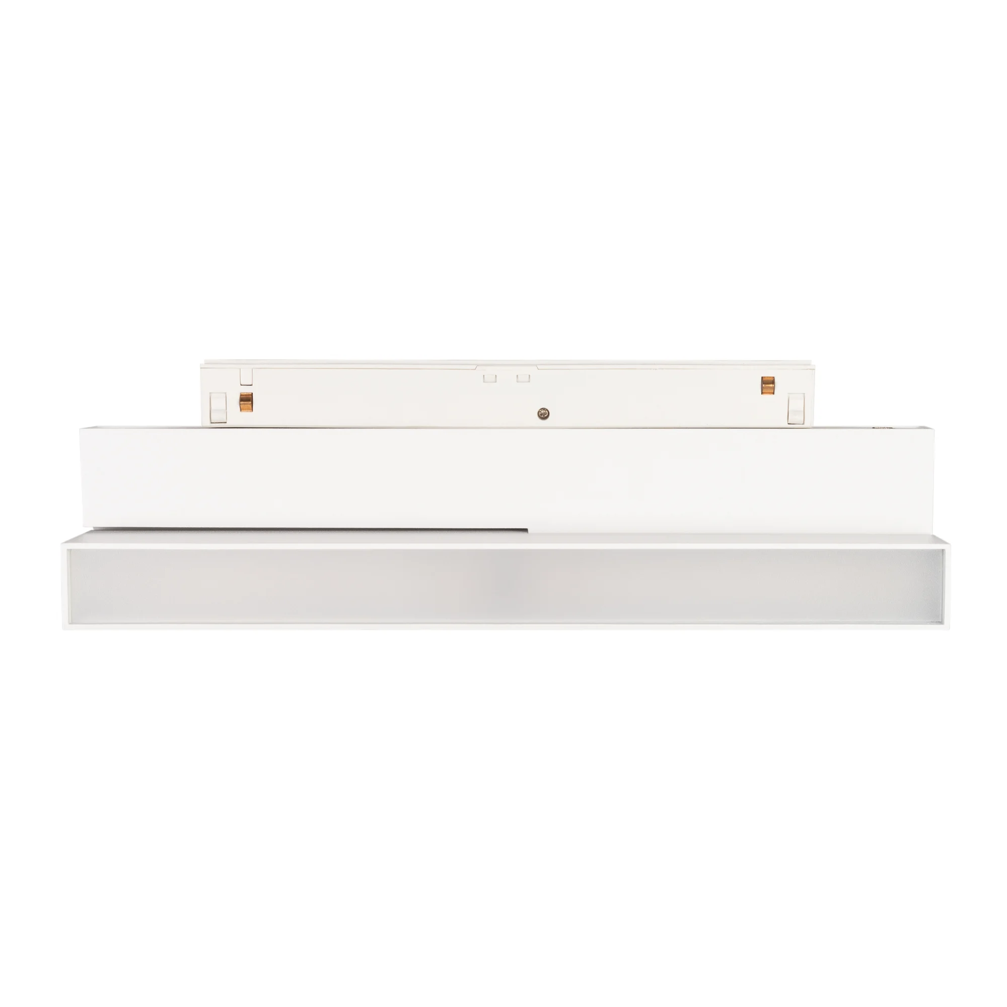 Светильник для магнитных треков MAG-ORIENT шириной 26 мм с управлением DALI и изменяемой цветовой температурой. Мощность 9 Вт, св. поток 770 лм, 85 лм/Вт, изменяемая цветовая температура 2700-6500 K, CRI>90, угол 110°, напряжение питания 48 В. Белый круглый корпус из металла, степень защиты IP20. Размер светоизлучающего модуля: 90×56 мм. Монтаж на трек MAG-ORIENT. Пульсация <1%.