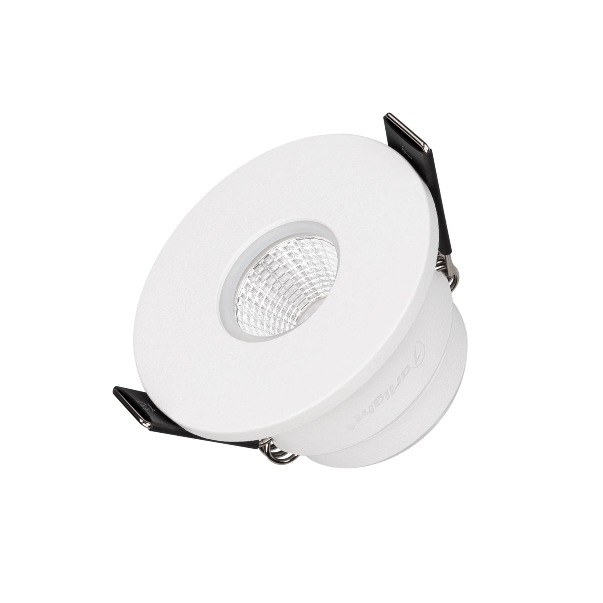 Встраиваемый светильник даунлайт. Мощность 5 Вт, св. поток 400 лм, 80 лм/Вт, дневной 4000 K, CRI>90, угол 60°, напряжение питания 230 В. Белый круглый корпус из алюминия, экран PMMA, степень защиты IP54. Размер: диаметр 54 мм, высота 30 мм. Монтаж Монтаж встраиваемый, установочное отверстие: диаметр 45 мм. Драйвер IP54, 8-12 В, 400 мА, пульсация <2%.