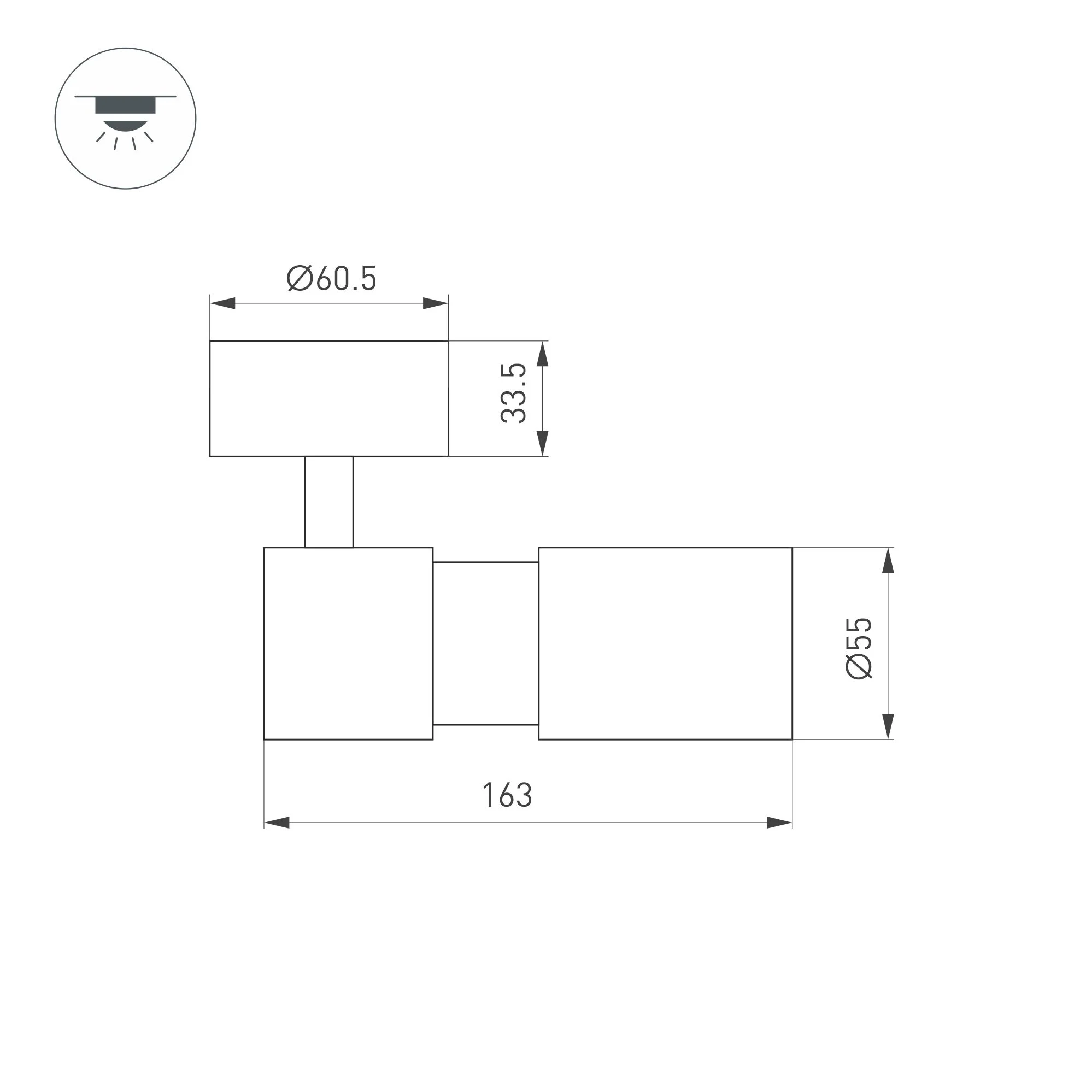 Накладной откидной поворотный светильник, 12Вт. Цвет свечения ДНЕВНОЙ 4000K, световой поток 720 лм, 60 лм/Вт, регулируемый угол 8-80°, CRI>90. Корпус круглый, металл, цвет черный, IP20. Размеры DxHxL Ø55×132~163,5 мм. Размер чаши Ø60,7×33,5 мм. Входное напряжение AC220-240V, мощность 12Вт. Драйвер встроенный (24-40V, 300 мА). Пульсация <1%.