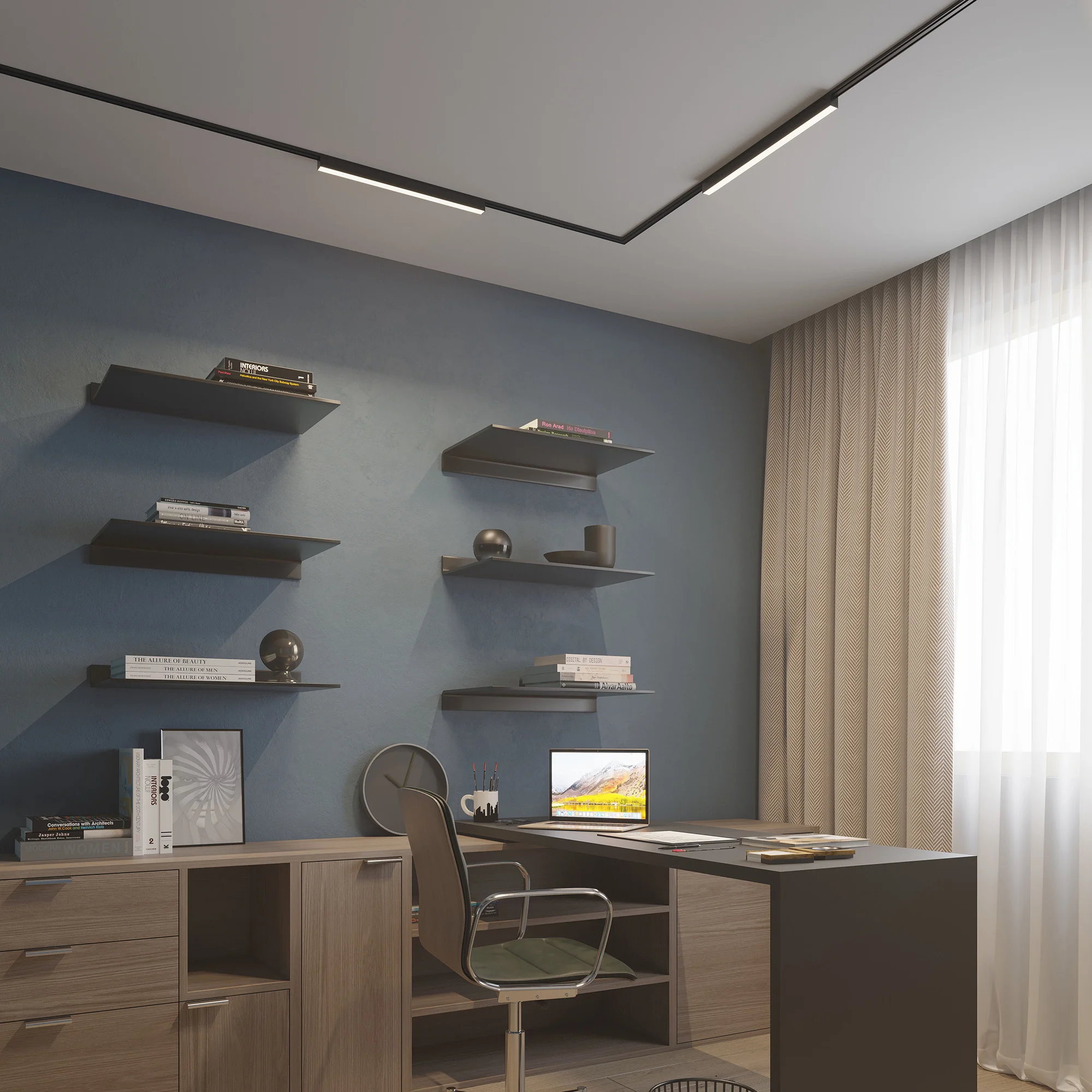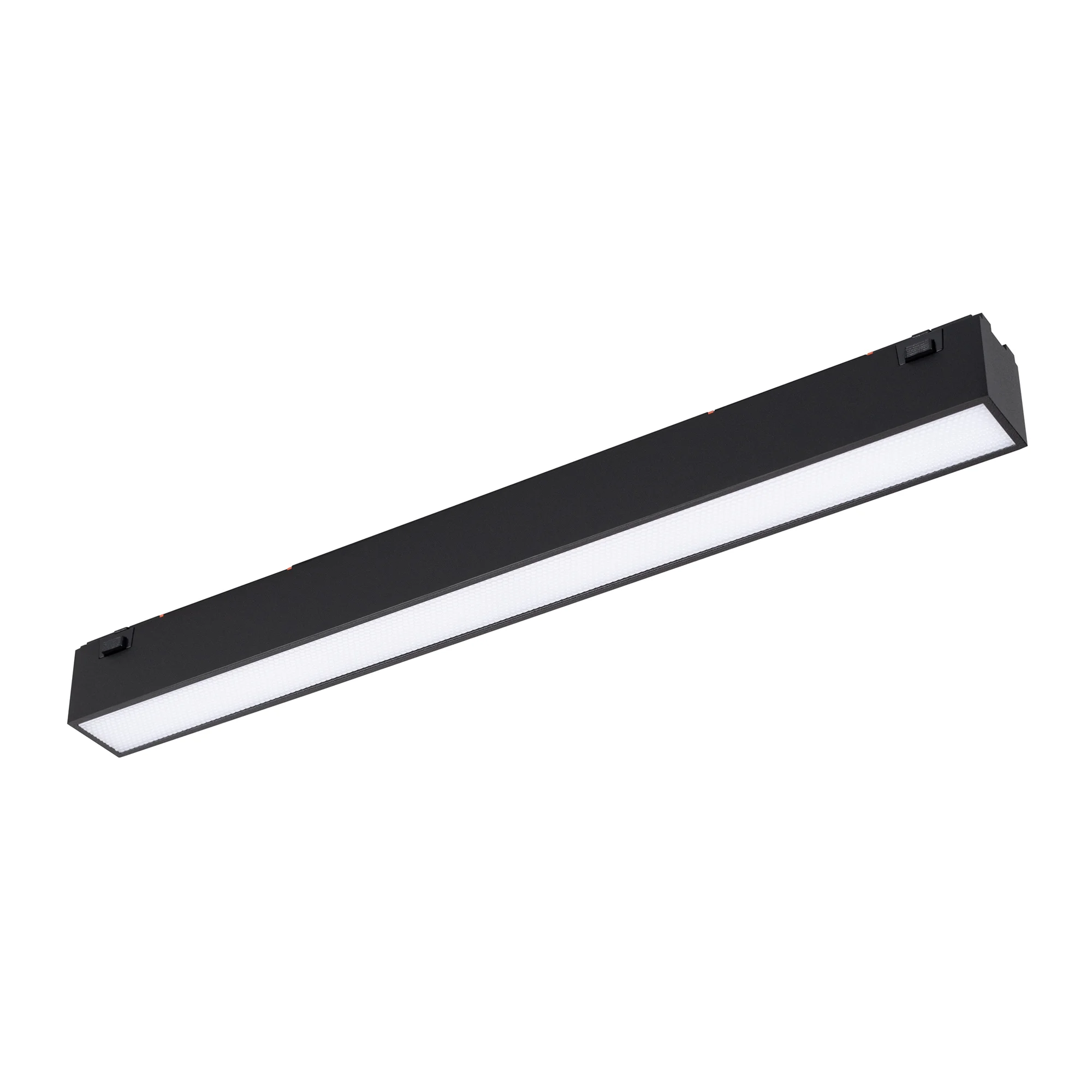 Светильник для магнитных треков MAG-VIBE. Мощность 24 Вт, св. поток 1770 лм, 74 лм/Вт, теплый 3000 K, CRI>90, угол 100°, напряжение питания 48 В. Черный прямоугольный корпус из алюминия, экран поликарбонат, степень защиты IP20. Размер: длина 485 мм, ширина 25 мм, высота 29 мм. Монтаж на трек MAG-ORIENT. Пульсация <1%.