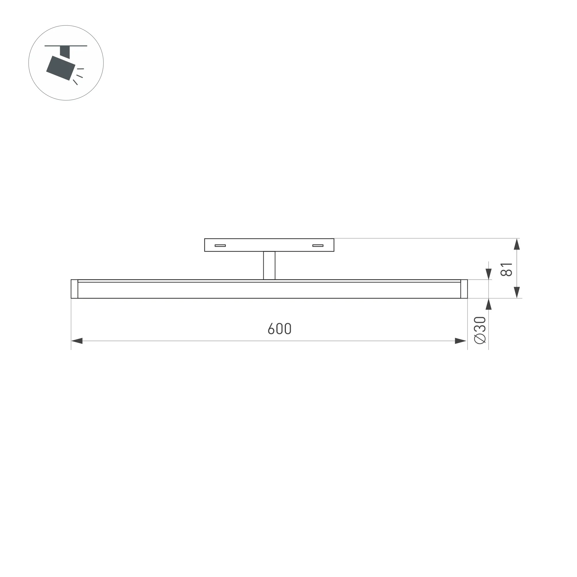 Светильник для магнитных треков MAG-ORIENT шириной 26 мм. Мощность 20 Вт, св. поток 2000 лм, 100 лм/Вт, теплый 3000 K, CRI>90, угол 180°, напряжение питания 48 В. Белый фигурный корпус из алюминия, экран поликарбонат, степень защиты IP20. Размер: диаметр 30 мм, длина 600 мм, высота 81 мм. Монтаж на трек MAG-ORIENT. Пульсация <1%.