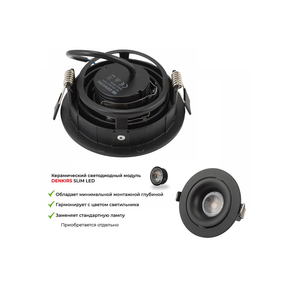 DENKIRS DK2120-BK Встраиваемый светильник, IP 20, 50 Вт, GU10, черный, алюминий Материал арматуры алюминий, Степень защиты ip 20, Тип лампы галогеновая или LED, Тип цоколя GU10, Мощность лампы 50, Мощность общая 50, Напряжение 220 , Площадь освещения 1,5, Пульт управления нет, Датчик движения Нет, гарантия 3 года