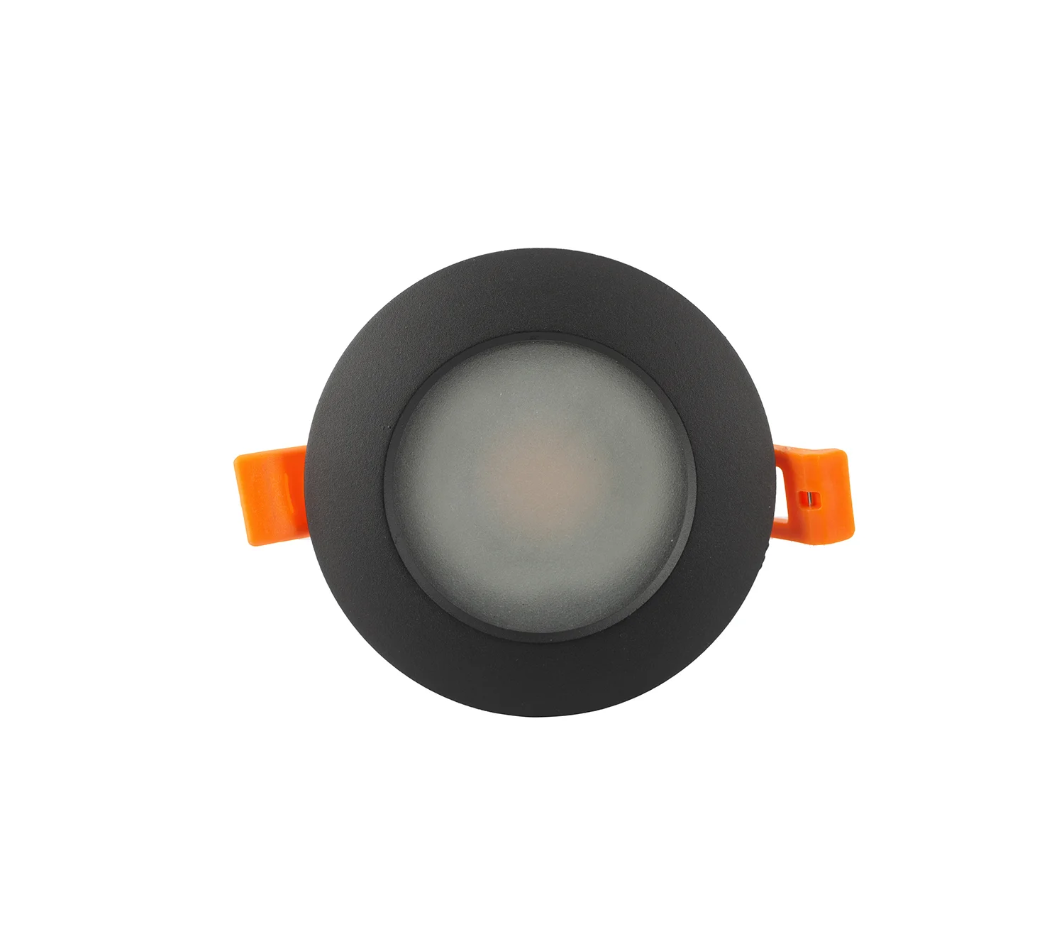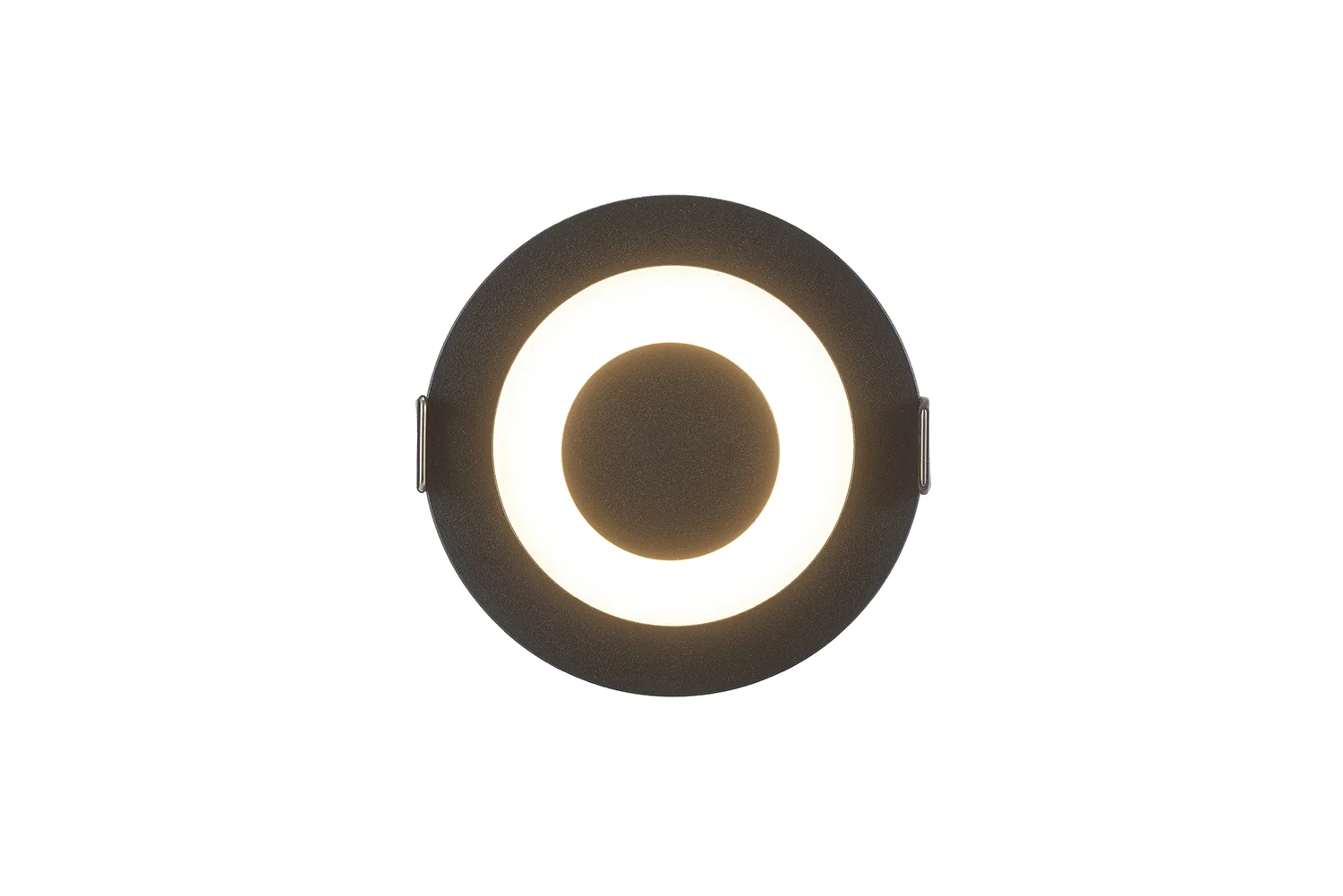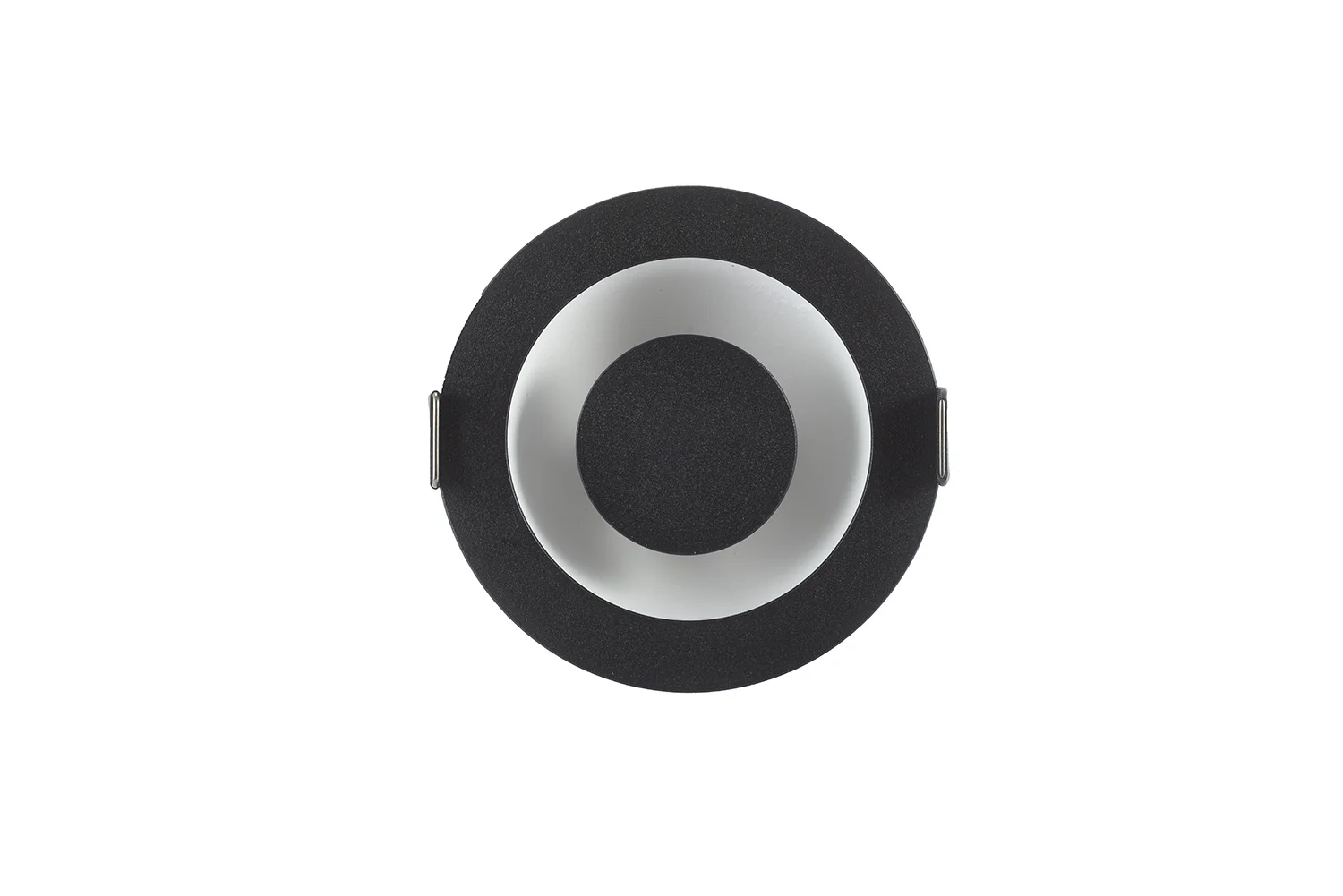 Встраиваемый светильник даунлайт с интегрированным в корпус драйвером. Мощность 6 Вт, св. поток 420 лм, 70 лм/Вт, дневной 4000 K, CRI>90, угол 100°, напряжение питания 230 В. Чёрный круглый корпус из алюминия, степень защиты IP20. Размер: диаметр 90 мм, высота 61 мм. Монтаж встраиваемый, установочное отверстие: диаметр 75 мм. Пульсация <2%.