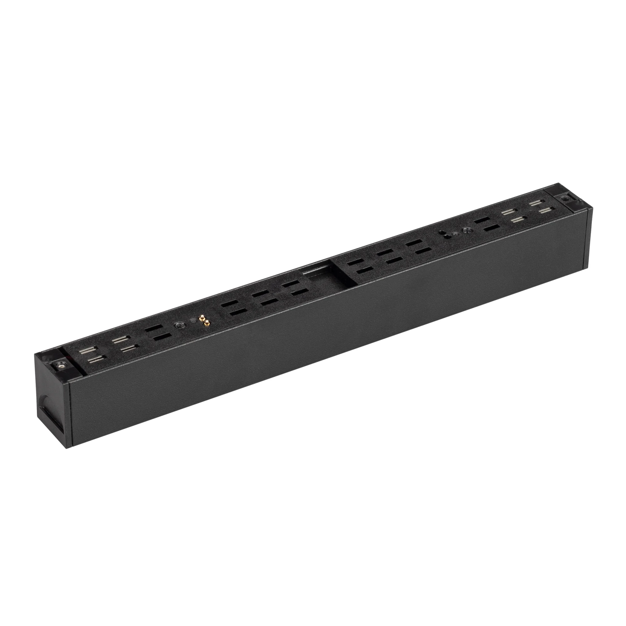 Светильник для магнитных треков шириной 45мм, 24Вт. Цвет свечения ТЕПЛЫЙ 3000K, световой поток 2400лм, угол 100°, CRI>90. Корпус прямоугольный, металл, цвет черный, IP20. Размеры LxWxH 804x35x43мм. Входное напряжение DC24V, мощность 24Вт. Драйвер DС24V/AC230V поставляется отдельно. Диммируется только с 026407(1), 027633.