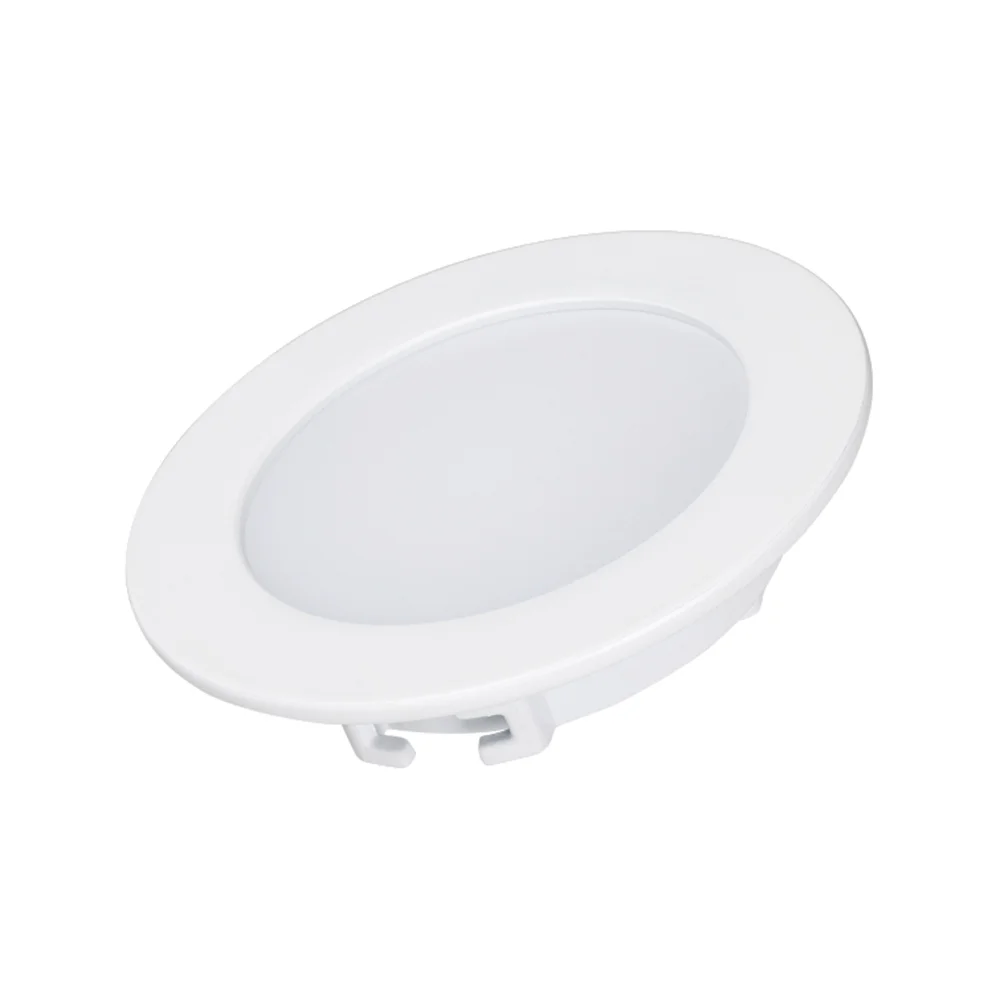 Светодиодная панель 5Вт, корпус IP40 белый, круглый. Цвет ТЕПЛЫЙ БЕЛЫЙ 3000K, св.поток 350-400лм, CRI(Ra)>80, угол 100°. Размер Ф90×22 мм, установка в отверстие 75 мм. Питание AC 230V, 5Вт, DC300mA 15…18V, драйвер в комплекте.