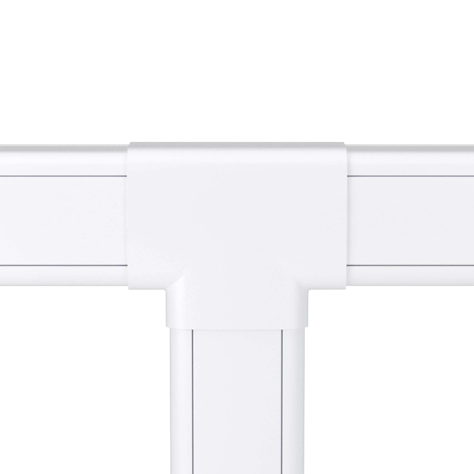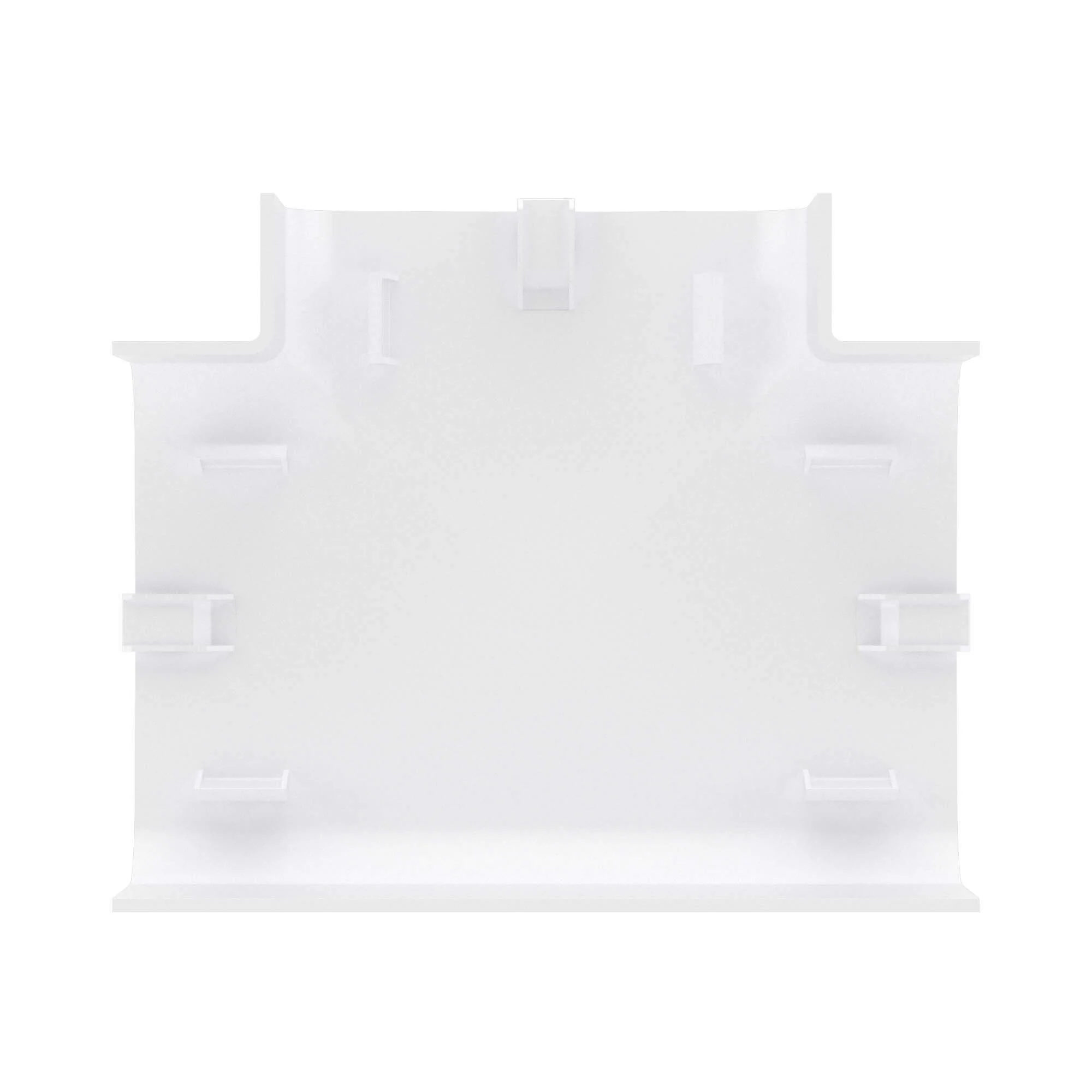 Тройник используется для маскировки мест Т-образных стыков. Аксессуар совместим с кабель-каналами 90х50 мм. Материал: накладка – АБС-пластик; база и разделители – ПП. Цвет — белый.