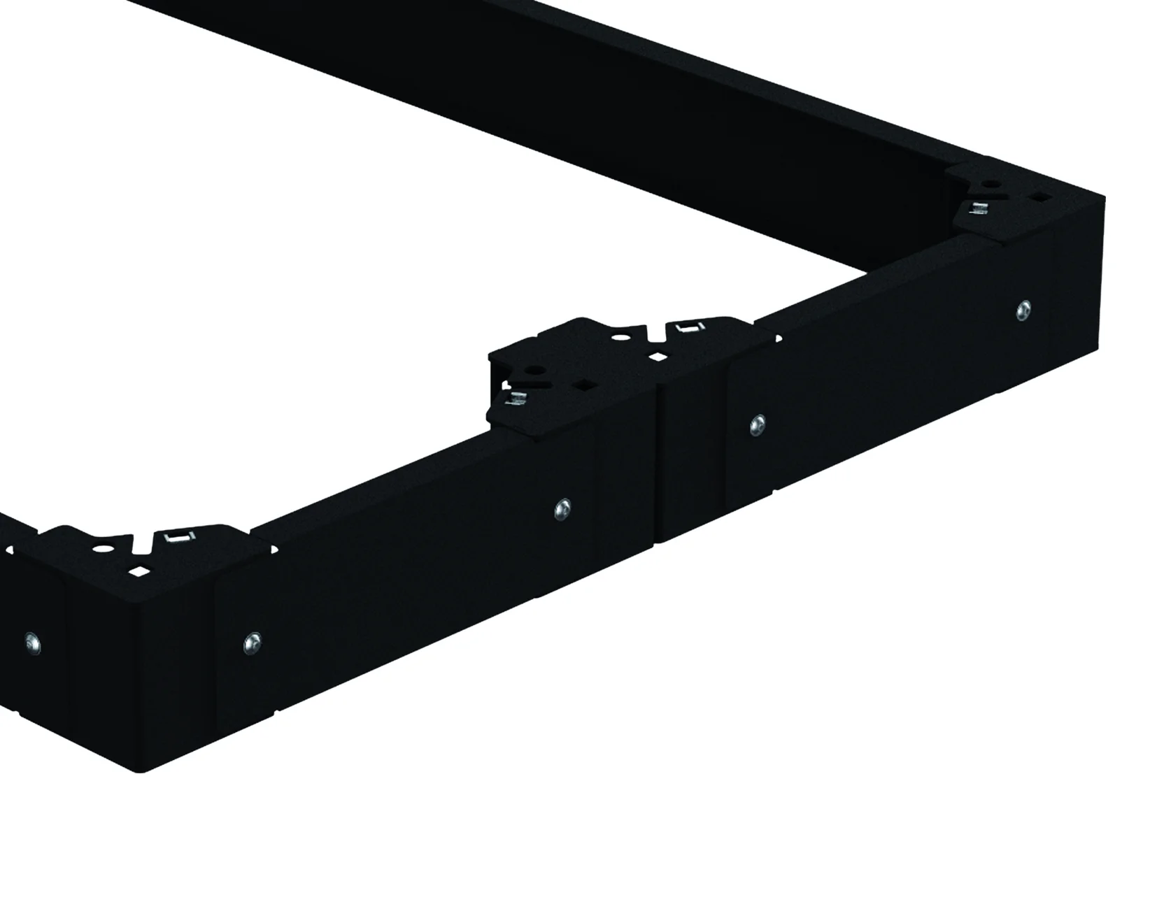 Цоколь к корпусу заказывается отдельным кодом. Он состоит из фланцев и угловых элементов. Фланцы универсальны — они могут устанавливаться как по ширине, так и по глубине шкафа. Цельносварные угловые элементы изготавливаются из оцинкованной стали толщиной 2,5 мм. Цоколь имеет порошковое покрытие RAL9005. Размеры по ширине и глубине взаимозаменяемы. Ш/ГхВ: 1000х100 мм