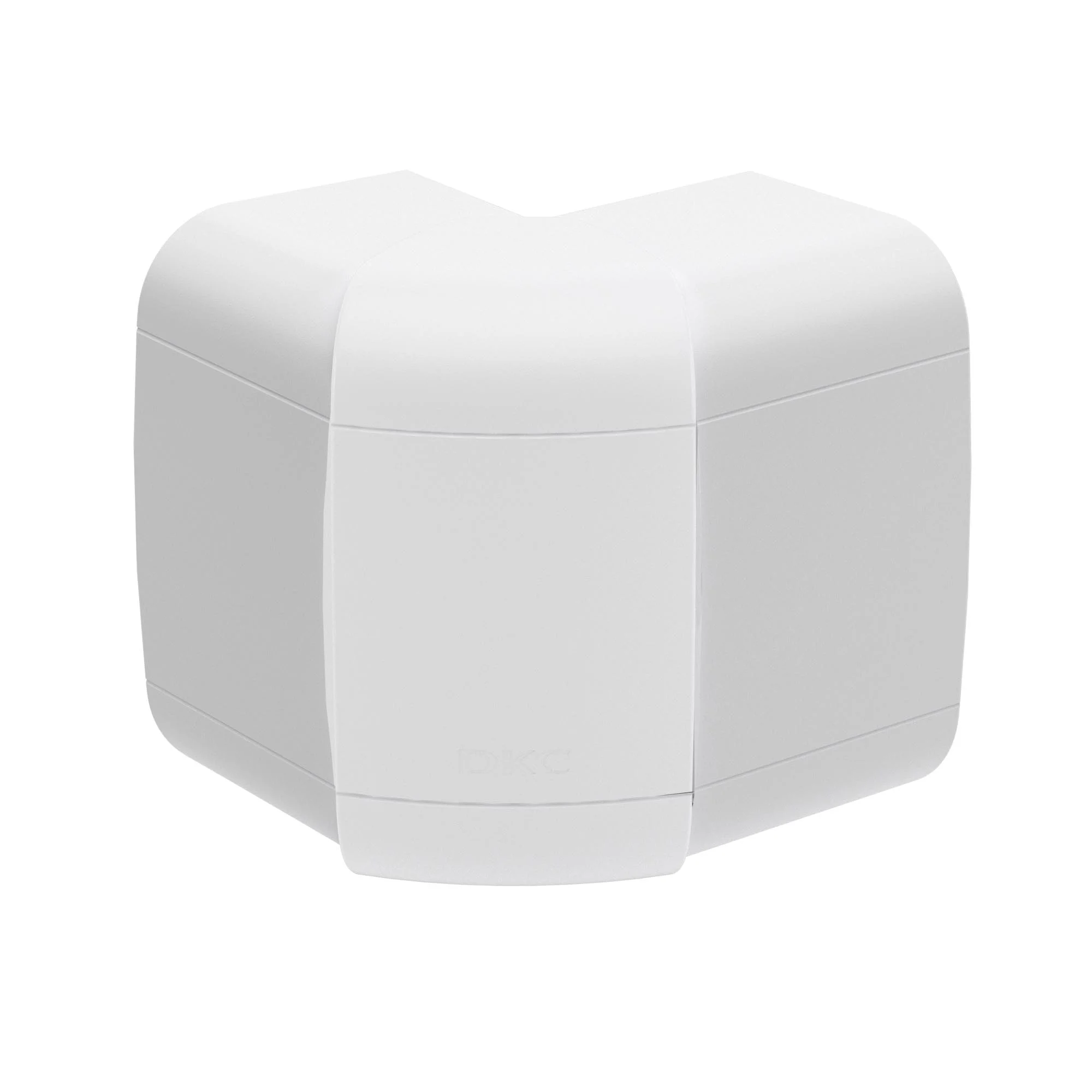Угол внешний изменяемый (80-120°). Назначение: декоративное оформление мест стыковки кабельных коробов. Характеристики: материал накладки – АБС-пластик; материал базы и разделителей – ПП; встроенные перегородки. Комплект поставки: внешняя декоративная накладка; внутренняя база; разделители (для монтажа на базу). Типоразмер 90х50, 90/2х50. Цвет белый