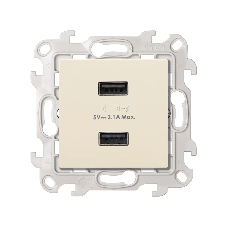 Розетка Systeme Electric (ранее Schneider Electric) серии AtlasDesign в цвете песочный двойная USB с разъемами типа A+C. Cовременная USB-зарядка с двумя разъемами позволяет заряжать как стандартные мобильные устройства через разъем типа А, так и новейшие устройства, в том числе ноутбуки, с разъемом типа С.