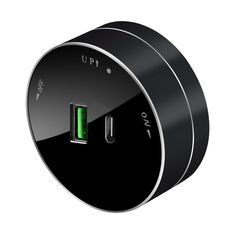 Розетка трековой системы MultiTrack (Systeme Electric) 2хUSB (тип А + тип С) 18 Вт, 5В/3А, 9В/2А, 12В/1.5А, цвет — антрацит. Устанавливается в шину MultiTrack. Быстрая и безопасная установка, не требующая привлечения специалиста: достаточно вставить розетку в шину и повернуть на 90 градусов до упора.