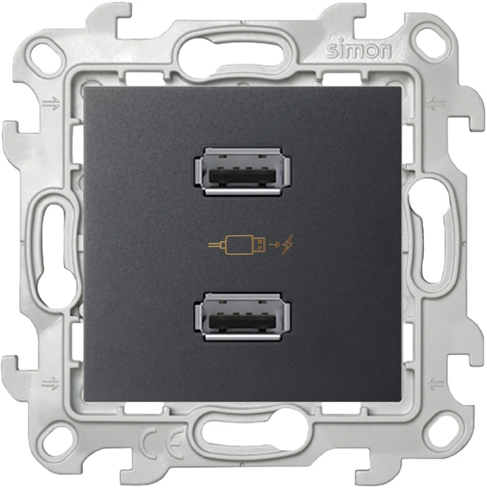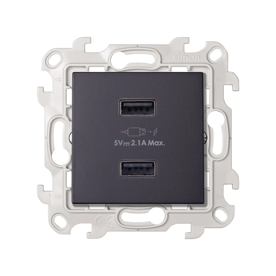 Systeme Electric Glossa Антрацит Розетка USB 5В/2,1А, 2х5В/1,05А